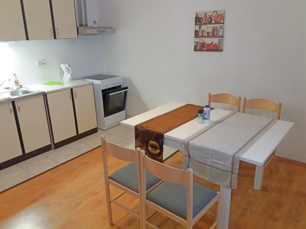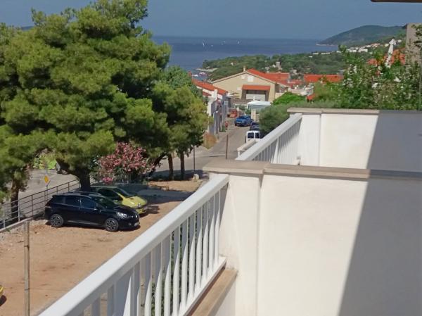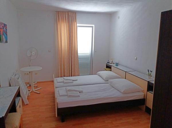 Dům je nově postavený a daleko od moře 600 m. Byt se nachází na samostatném patře a má vlastní vchod. Všechny jsou moderně zařízené a vybavené pro váš příjemný pobyt, každý pokoj má vlastní terasu s krásným výhledem. V bytě je kuchyň s jídelním koutem a obývací pokoj, který má také vlastní terasu s výhledem na moře. K dispozici je plný byt se třemi pokoji, čtyřmi terasami a dvěma koupelnami, kuchyň a obývací pokoj. Parkování není soukromé, na ulici je dostatek parkovacích míst pro všechny sousedy. Krásná oblázková pláž se dostanete pěšky za méně než 10 minut. V osadě je obchod a ostatní zařízení (banka, lékárna) jsou v centru města 800 m od hotelu.