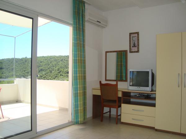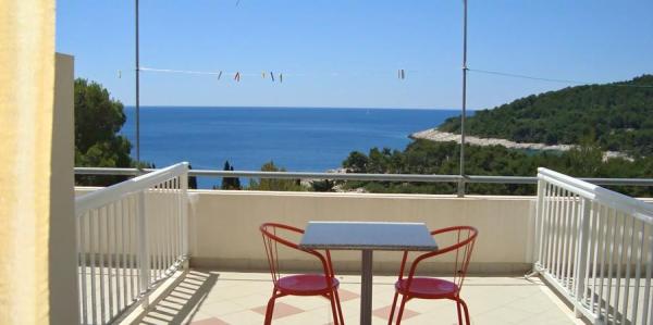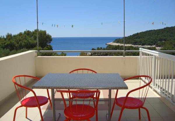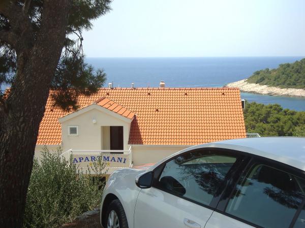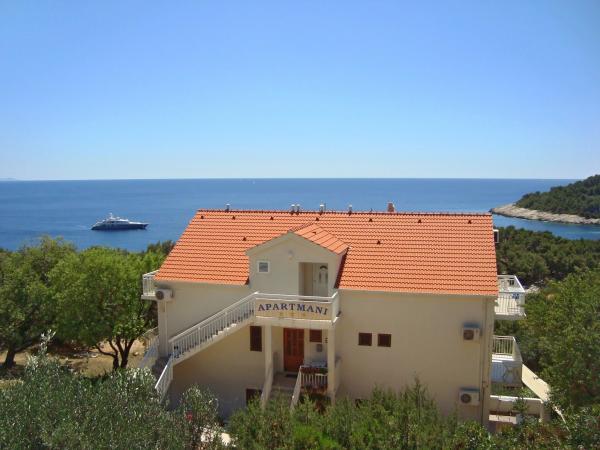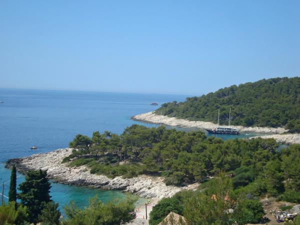 Apartrman se nachází na kopci, v klidné lokalitě, jen pár minut chůze od moře a pláže. Milna je malá obec se nachází na jižní straně ostrova a asi 5 km od centra stejnojmenného města.