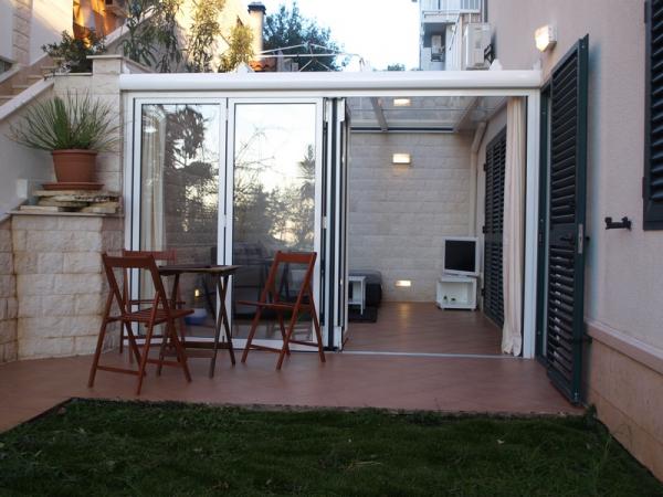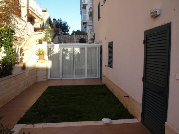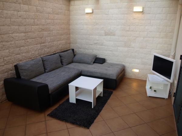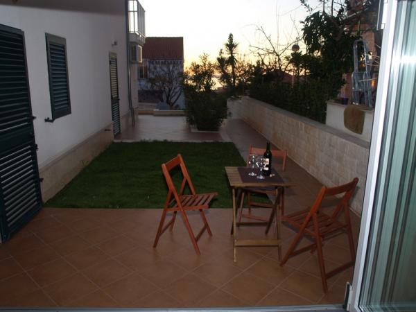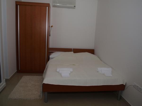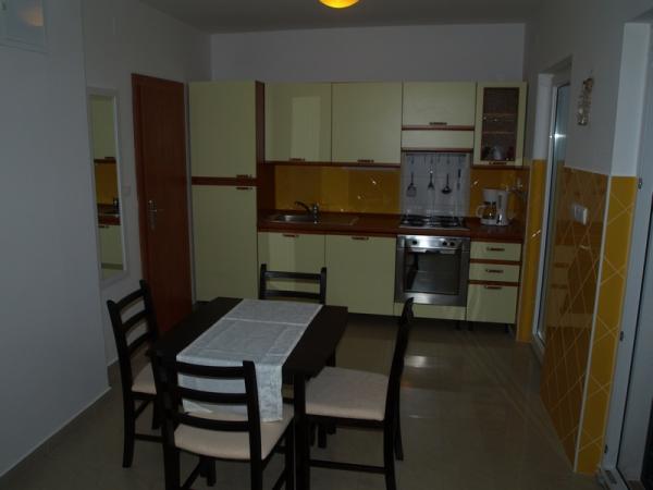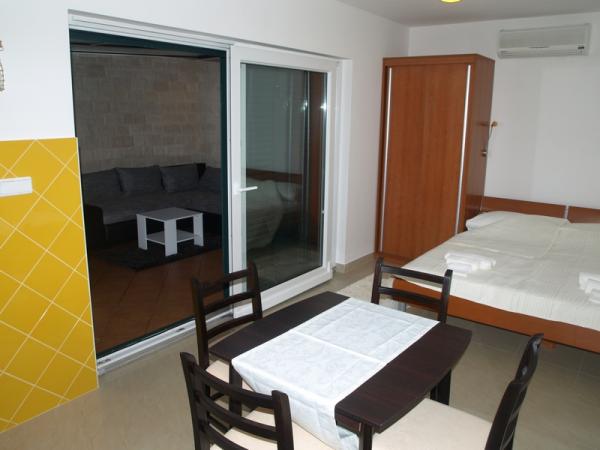 Kompletně zařízené studio v přízemí, s částečným výhledem na moře. 5 minut chůze od nejkrásnější pláže - Pokonji Arr. Studio - Apartmán v jedné místnosti je prostor na spaní (manželská postel), kuchyň a jídelní stůl se čtyřmi židlemi. V další místnosti je rohové apartmá s TV. Kuchyňská linka obsahuje sporák, lednička, kávovar, mikrovlnná trouba, příbory, atd. .. Koupelna s WC a sprchovým koutem. Před není malá terasa 7 m2 se stolem a židlemi.