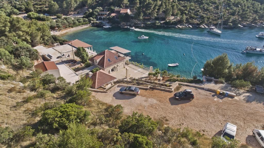 Apartmány v klidné zátoce 3,5 km od města Hvar. Dům se nachází v blízkosti kempu Vira, naproti hospody Ringo. Znamenitá volba pro klidnou dovolenou u moře, přesto v blízkosti veškeré občanské vybavenosti. Až do domu je po soukromé komunikaci, a je možné k přístupu od moře. Dům, ve kterém jsou byty má soukromou pláž s lehátky a sprchou, kotvištěm pro člun, schodiště vede ke vchodu. Apartmány se skládají z WC, kuchyň, ložnice a velká terasa, která se nachází nad mořem. Budeme také hovořit o venkovní gril, přírodní odstín, krásné výhledy a soukromé parkoviště. Na pláži je oblázkové a boční prostory mají ploché kameny, vhodné pro slunění, chráněné před nežádoucími pohledy.