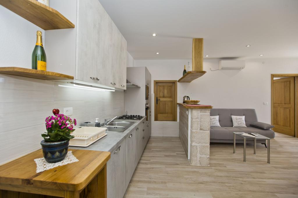 Byt je vynikající, moderní, se vším, co byste mohli potřebovat. Kuchyň je plně vybavená, nic nám nechybělo. Moře je jen pár kroků od apartmánu a na kamenném břehu jsou lehátka a venkovní sprcha. Zátoka je klidná a tichá, ráj na zemi, přes ulici jsou dvě taverny. Náš pobyt jsme si užili, Sunčica je skvělý hostitel. Určitě se vrátíme. Doporučení pro domácí červené víno a bylinnou medicínu.