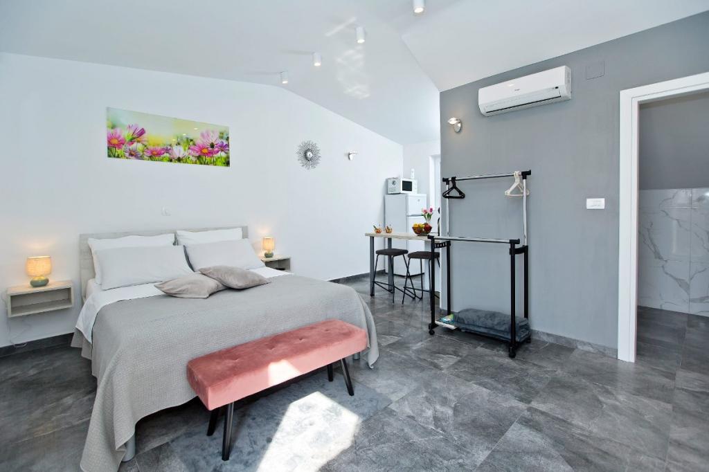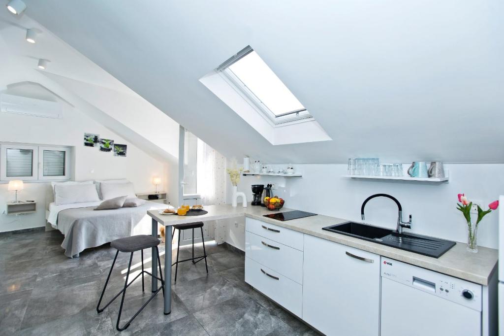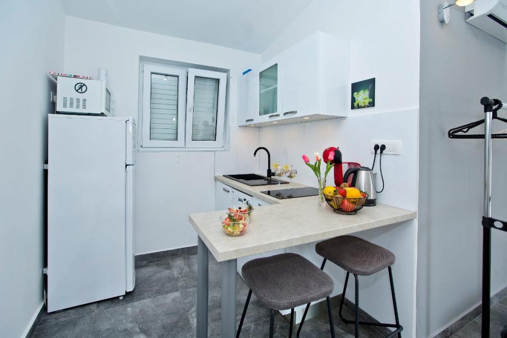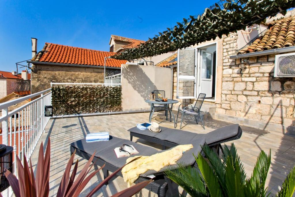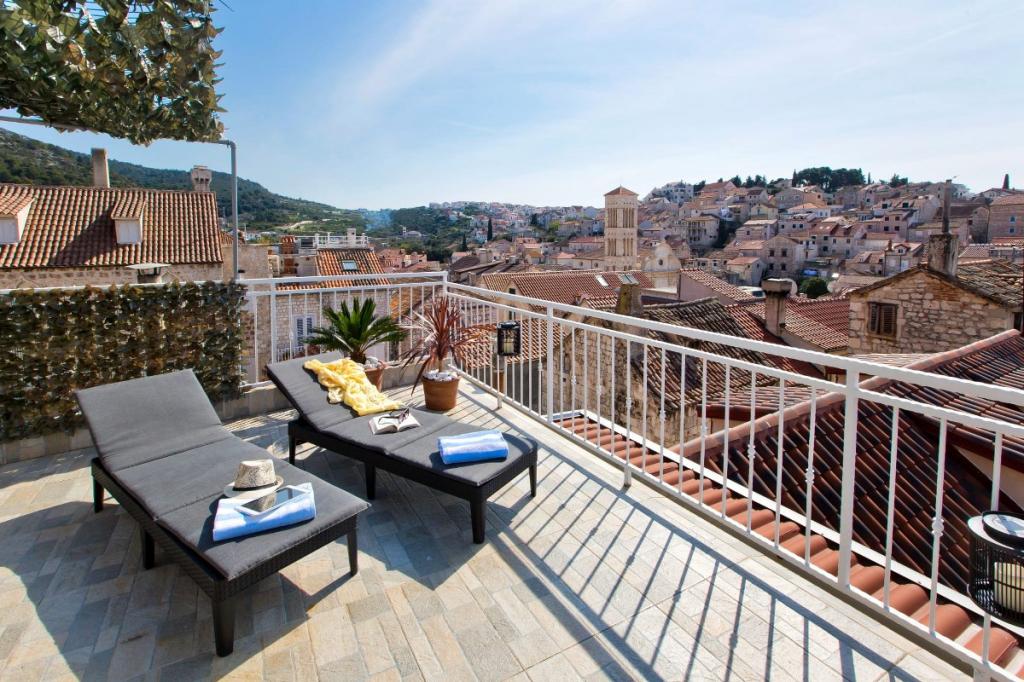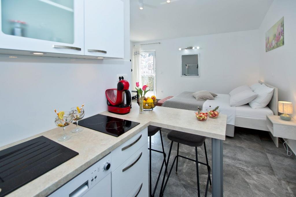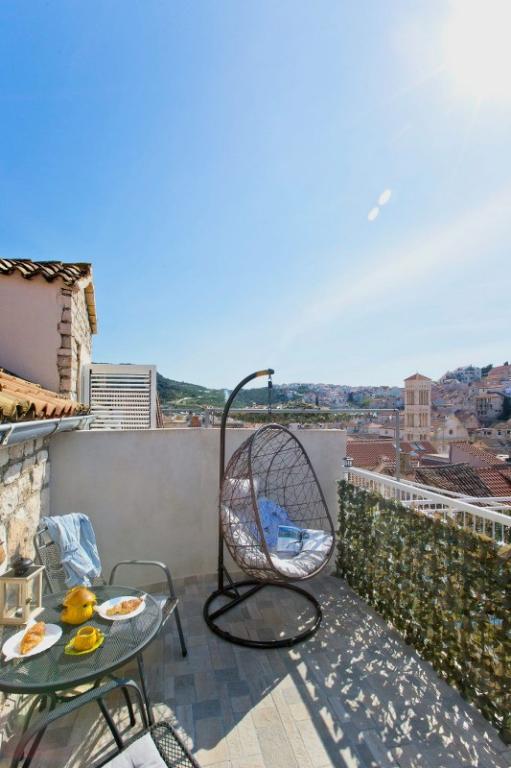 Elegantně zařízené studiové apartmány, které se nacházejí v samém centru města Hvar, nabízejí perfektní kombinaci pohodlí a vynikající polohy. Apartmány jsou světlé a moderní, vybavené pohodlnou manželskou postelí (160 × 200), plně vybavenými kuchyněmi se vším potřebným vybavením (lednička s mrazákem, rychlovarná konvice, toustovač, varné plotýnky, mikrovlnné trouby, myčky nádobí), koupelnami se sprchovým koutem, klimatizací a oběma soukromými terasami (venkovní stůl, židle a lehátka) s fascinujícím výhledem na staré město a krásný hvarský přístav. Zažijte to nejlepší z Hvaru doslova na prahu: okouzlující kavárny, špičkové restaurace, útulné snídaňové podniky, místní butiky a obchody se suvenýry. Hlavní náměstí s katedrálou sv. Štěpána a nejstarším veřejným divadlem v Evropě jsou jen 3 minuty chůze od vašich dveří. Budete bydlet v samém centru Hvaru, přesto v dokonale odlehlé ulici, která vám zajistí klidný a příjemný noční spánek.