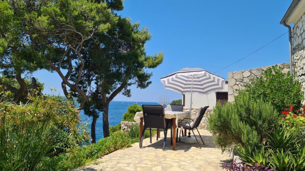 Nabízený apartmán je penzion pro dovolenou, který je v první řadě k moři. Skládá se ze dvou dvoulůžkových pokojů, kuchyňského koutu, koupelny a prostorné terasy s výhledem do zeleně a na moře. Koupání je možné na skalách pod domem. První pláž (s krásným výhledem na západ slunce) je procházkou podél pobřeží za necelých 5 minut. Centrum města je vzdálené asi 15 až 20 minut chůze po pobřeží a v polovině cesty narazíte na několik kaváren, restaurací a obchodů. Nacházíme se v klidnější části města Hvar, kde můžete slyšet vlny a přitom blízko všeho. Dům je vybaven klimatizací a Wi-Fi připojením. Na této stránce pravidelně aktualizujeme rezervační kalendář a ceník, proto vás vyzývám ke kontrole požadovaného termínu. Pronajímáme pouze tento jeden apartmán s terasou, který je na fotkách a bohužel jiný Vám nemůžeme nabídnout v termínech, které jsou v kalendáři obsazené. Těšíme se na Váš příjezd :)
