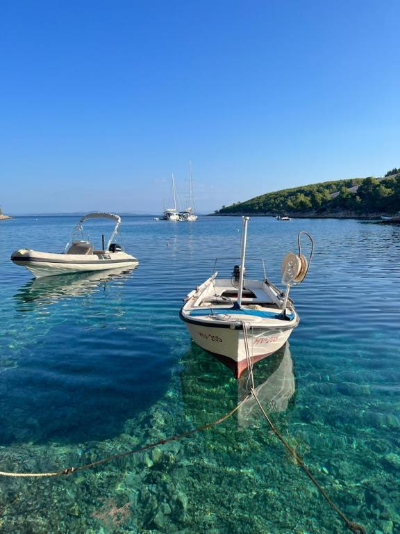 4 km od města Hvar se nachází zátoka Jagodna, zátoka Primitivo Hvar. Soukromé, klidné a relaxační místo, 200 m od silnice, jen 20 m od moře! Rekreační dům pro 8 osob, 4 pokoje s vlastní koupelnou, všechny pokoje s výhledem na moře a záliv, velká terasa a balkon a prostorná kuchyně + gril. Každý pokoj má velkou postel 180x200, samostatnou koupelnu, šatní skříň a psací stůl. Ideální místo pro odpočinek a relaxaci, vhodné pro rodiny s dětmi i pro skupiny přátel, všichni mazlíčci jsou vítáni! Město Hvar nabízí veškeré vybavení pro skutečnou zábavu, restaurace a krásné letní noci, je to 5 minut jízdy autem. Naše zátoka nabízí klid a relaxaci, stejně jako požitek z čistého moře a nezapomenutelných východů a západů slunce. Od probuzení až po vychutnání si krásného moře vám stačí jedna minuta! Je možné kotvit všechny typy námořních plavidel. Těšíme se na váš příjezd!