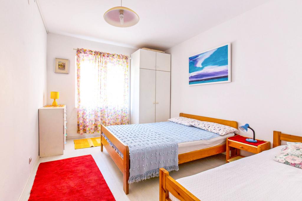 Byt se nachází v Igrane, místě mezi krásnými mořskými plážemi a svahy Biokova. Nad městem se tyčí štíhlá zvonice Panny Marie Růžencové, která dává městu krásný výhled. Byt se skládá ze dvou ložnic, obývacího pokoje, kuchyně a koupelny a velké zahrady (62 m2), do které má každý pokoj přístup. Zahrada je obohacena květinami, posezením, grilem a příjemným stínem. Byt je vybaven pro pohodlný pobyt 5 dospělých; ložní prádlo a ručníky, nádobí a příslušenství jsou k dispozici. Povrch bytu je 52 m2 a je 100 m od místní pláže, 100 m od supermarketu, pošty a turistické kanceláře. Jedno parkovací místo se nachází v blízkosti bytu. Byt je klimatizovaný a má bezdrátové připojení k internetu. Těším se na váš příjezd! Jadranka Simic
