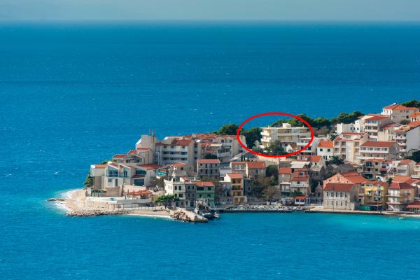 Apartmány Karmelo se nachází ve středu města Igrane, naproti hotelu Punta. Překrásné oblázkové pláže jsou vzdáleny pouhých 50 m od objektu, v blízkosti se nachází také restaurace a obchody.