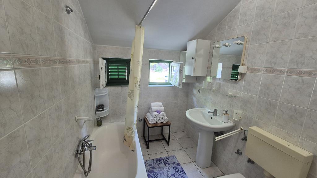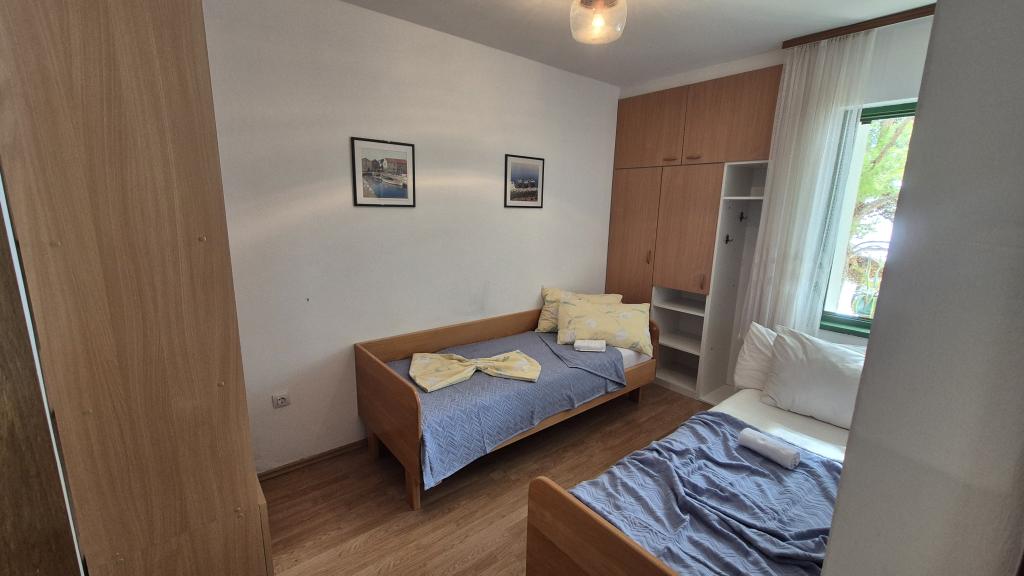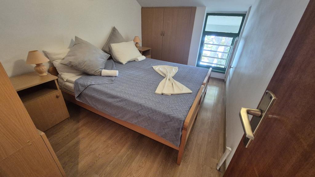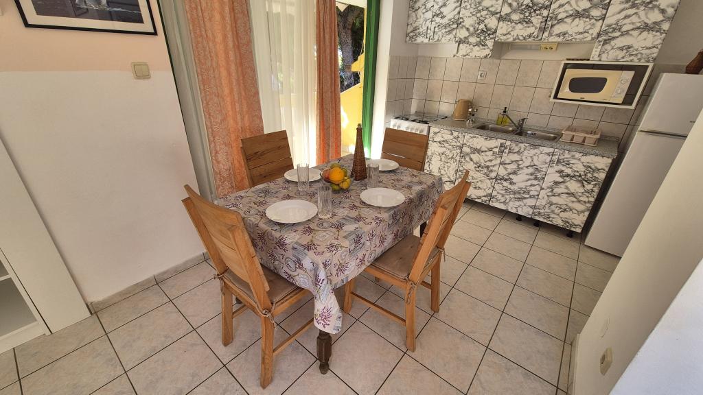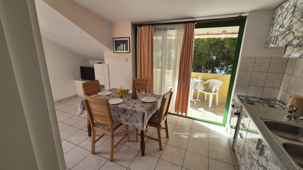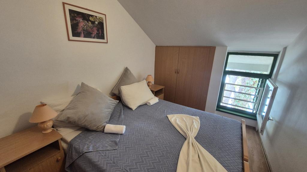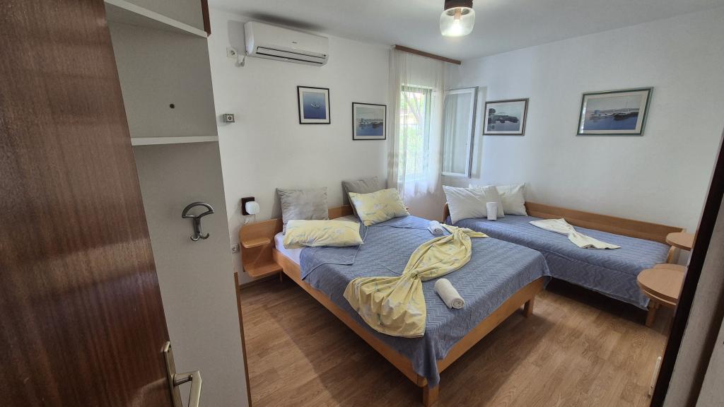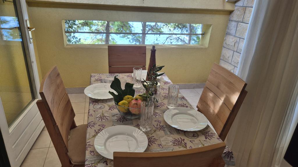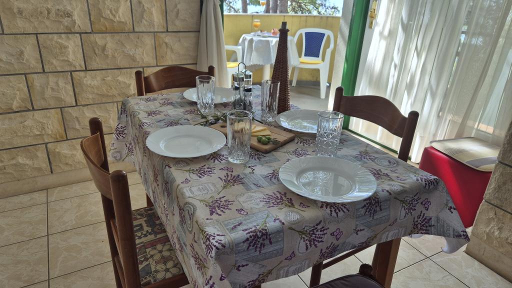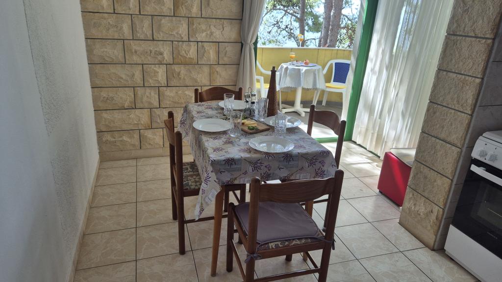 Apartmány Arpina se nacházejí v hustém borovém lese, v první řadě k moři. V bezprostřední blízkosti apartmánu se nachází několik oblázkových pláží, zatímco před domem je kamenná pláž vzdálená pouhých 10 metrů. Ubytování má upravený dvůr s lehátky a stoly pro hosty s otevřeným výhledem na moře. Hosté mají k dispozici parkování a použití grilu a na požádání je k dispozici pračka a dětská postýlka. Ubytování se skládá z celkem 5 apartmánů s celkovou kapacitou až 18 osob. Všechny apartmány mají výhled na moře, jsou klimatizované a vybavené kuchyňkou a WI-FI internet je k dispozici v celém objektu.
