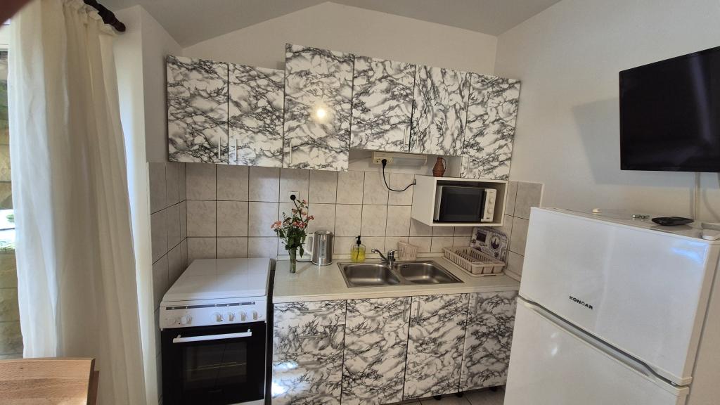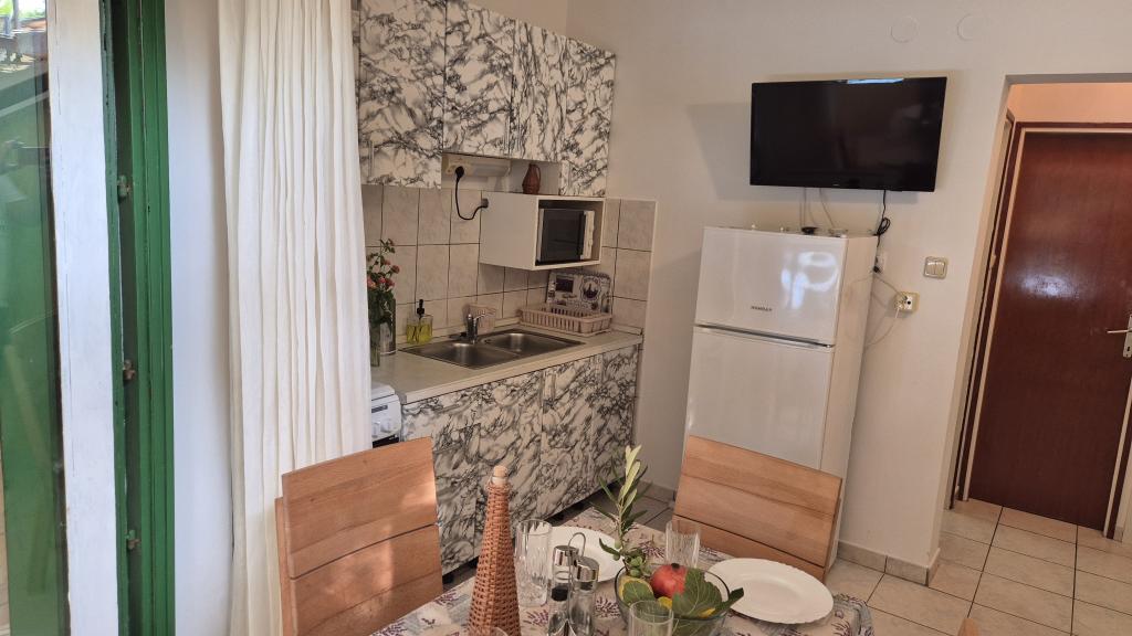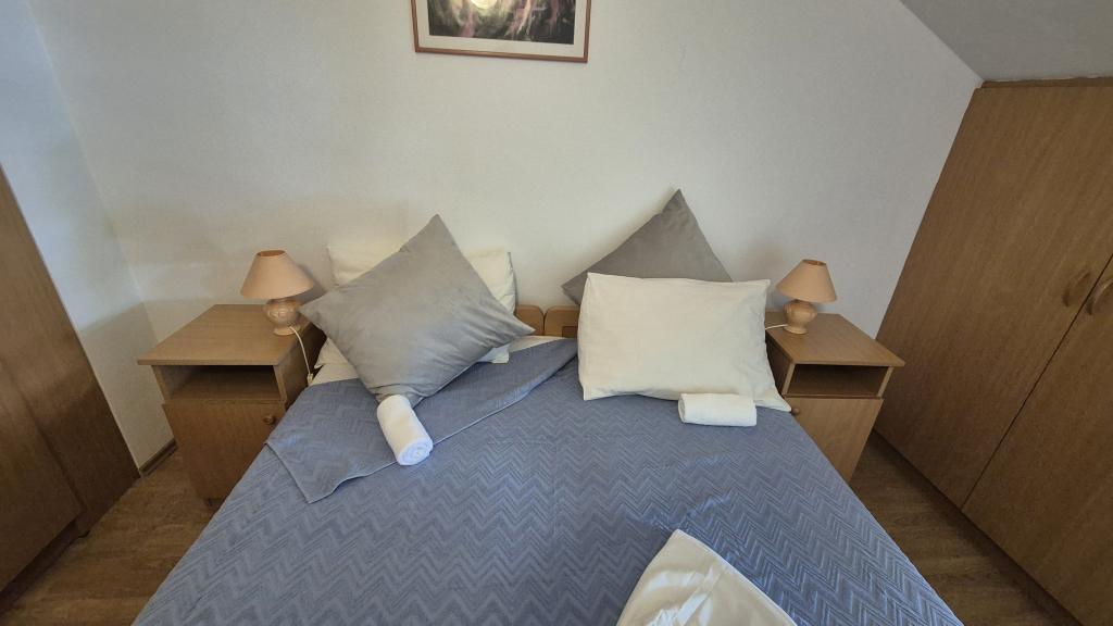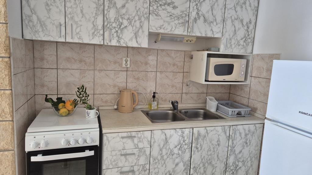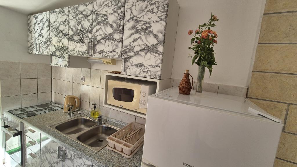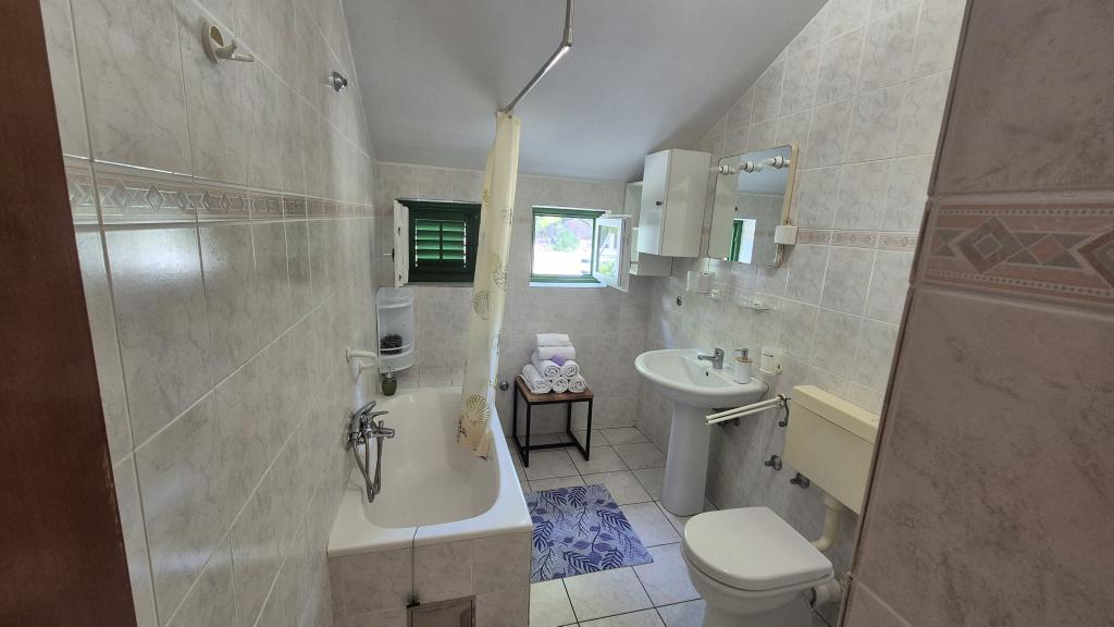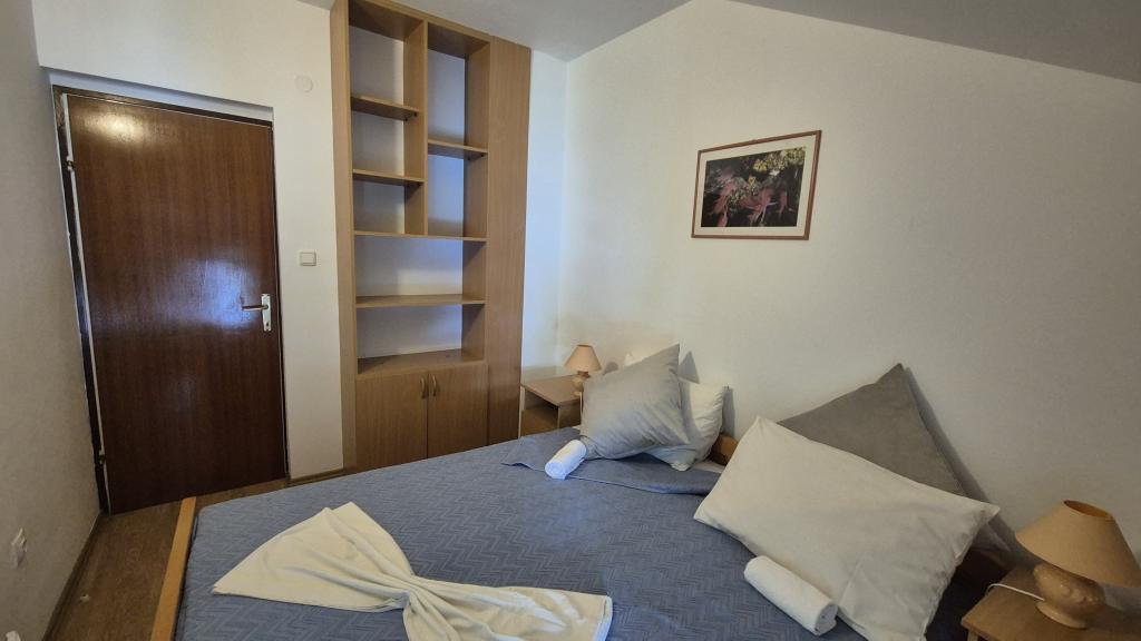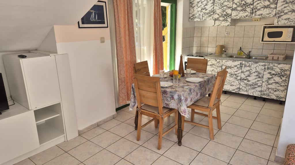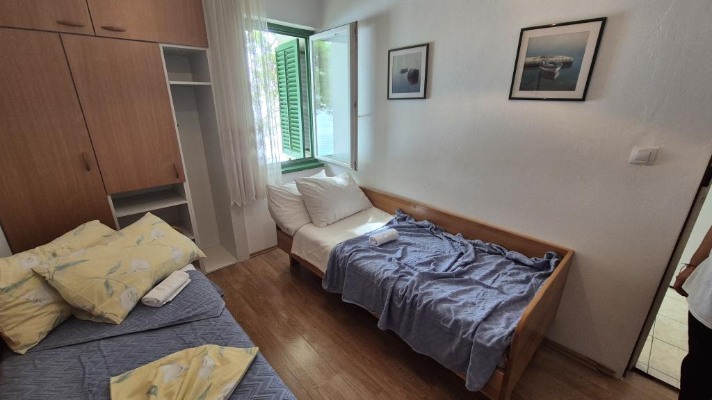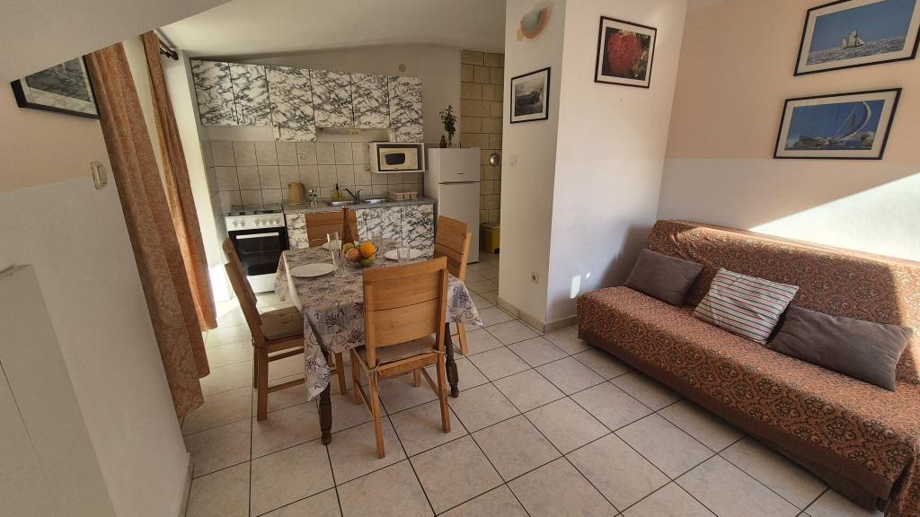 Apartmány Arpina se nacházejí v hustém borovém lese, v první řadě k moři. V bezprostřední blízkosti apartmánu se nachází několik oblázkových pláží, zatímco před domem je kamenná pláž vzdálená pouhých 10 metrů. Ubytování má upravený dvůr s lehátky a stoly pro hosty s otevřeným výhledem na moře. Hosté mají k dispozici parkování a použití grilu a na požádání je k dispozici pračka a dětská postýlka. Ubytování se skládá z celkem 5 apartmánů s celkovou kapacitou až 18 osob. Všechny apartmány mají výhled na moře, jsou klimatizované a vybavené kuchyňkou a WI-FI internet je k dispozici v celém objektu.