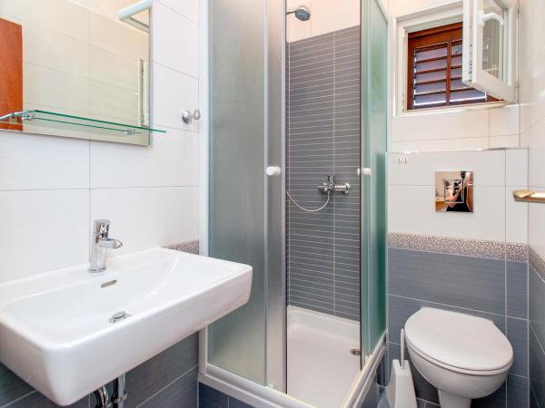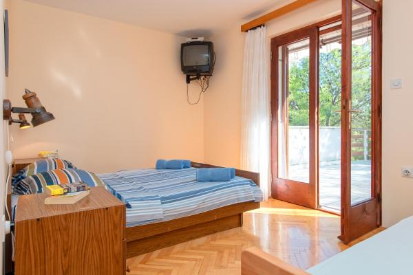Při pobytu na 7 nocí v tomto apartmánu, který nevypadá jako byt z obrázků, jsem zažil největší nepříjemnost ve svém životě. Po návratu na hranicích se mě policista zeptal, kde se zdržuji a proč nejsem registrován??!!!! V úžasu a šoku jsem se mu snažil vysvětlit, kde jsem byl ubytován a že tam stojí, že pobytová taxa je zahrnuta v nereálně vysoké ceně za ubytování, které jsme platili! Řekl mi, že nejsem registrován a že musím zaplatit pokutu 500 HRK!!!! Nyní, co se týče samotného ubytování, jediné pozitivum (asi je samozřejmé) je, že byt je čistý. Nábytek v bytě je z minulého století! Skříně jsou přibité??!!! a nedaly se použít!!! Klimatizace funguje napůl. Jakmile jsme dorazili, upozornili jsme hostitele, že satelitní kanály nefungují a nikdo se nesnažil problém vyřešit celých 7 dní! ! Terasa je prostorná, ale od bytu jste odděleni nízkou zídkou, která nejde nadoraz, takže jste stejně jako hosté vedle nás zcela ochuzeni o intimitu. Zvláštním příběhem je velmi nepohodlná, malá a starodávná postel, která při každém pohybu tak vrzá, že nás s manželkou během všech těchto 7 nocí probudila. Celkově se cítíme podvedeni a poníženi!!!