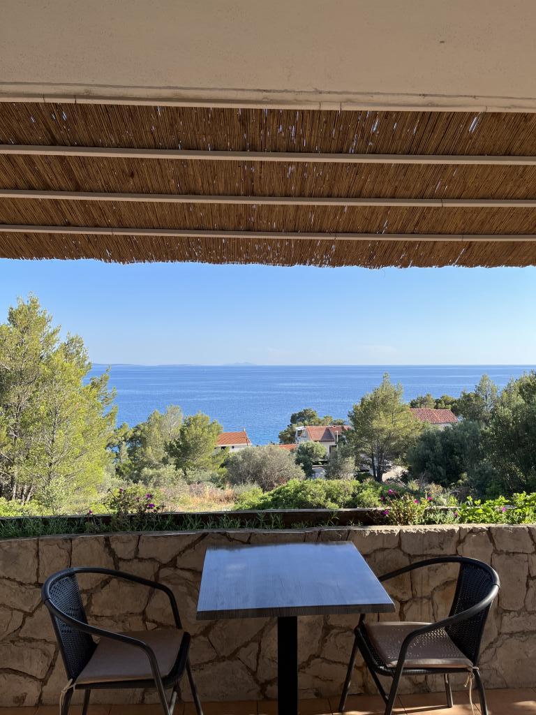 12 dní hodování.. krásný výhled z balkónu (ale i z postele) na moře a ostrovy Šćedro, Korčula, Sušac.. blízko pláží, oblázkové, skalnaté + stín borového lesa, křišťálově čisté moře, apartmán plně vybavená, nová klimatizace, velká lednice, čisto, uklizeno a moc milí hostitelé, paní Nataša a pan Toni, děkujeme za výbornou večeři, vše nejlepší Vám i holkám...a "našemu" Lokimu