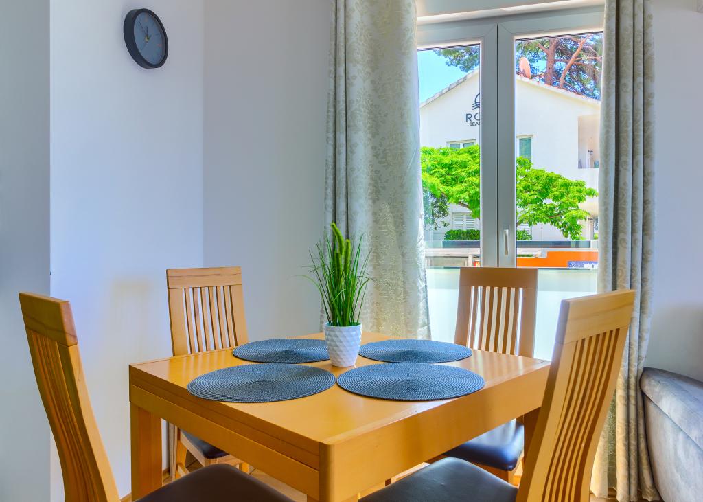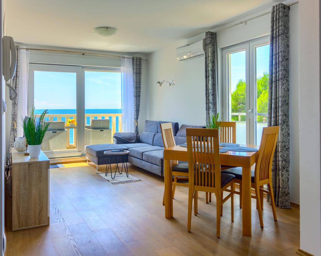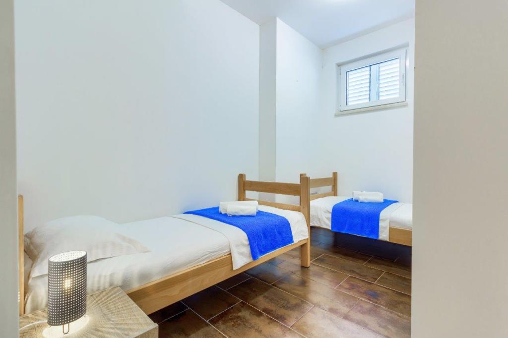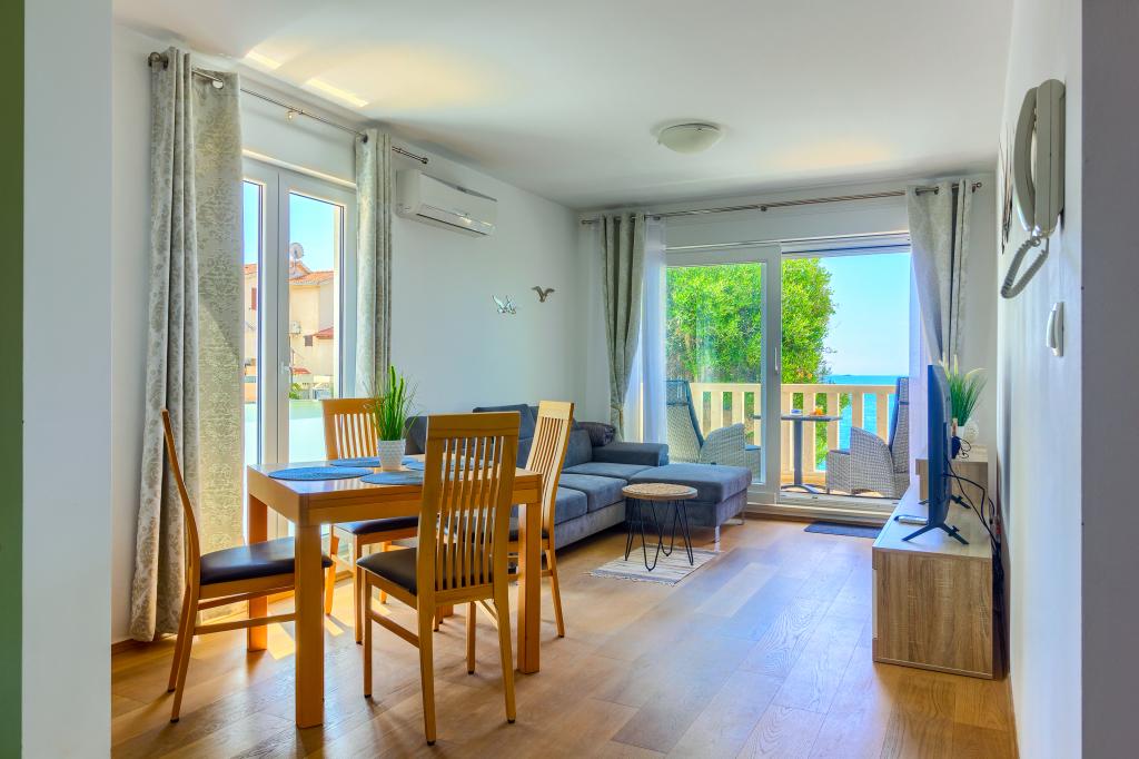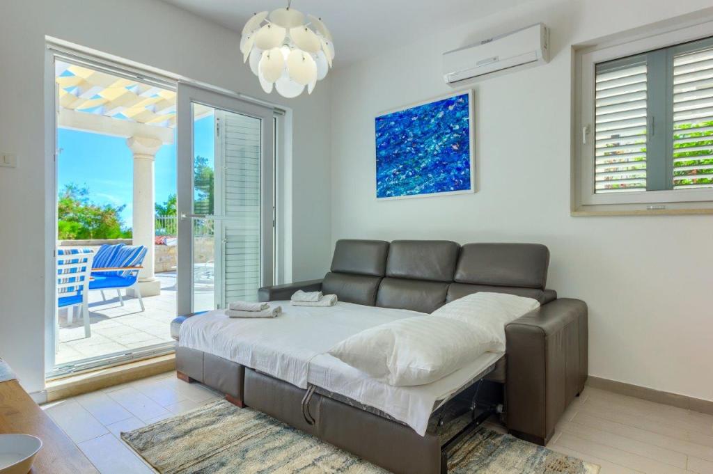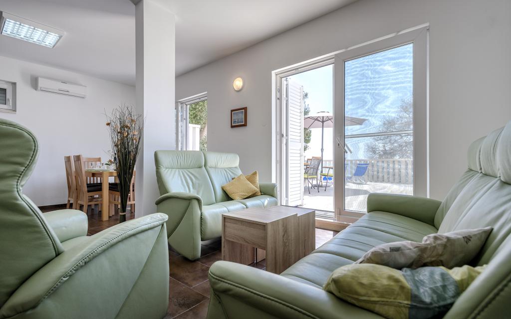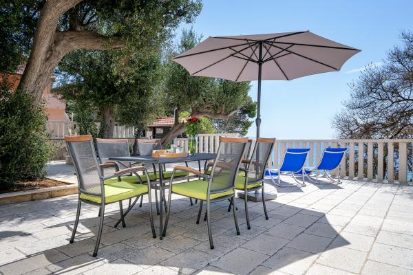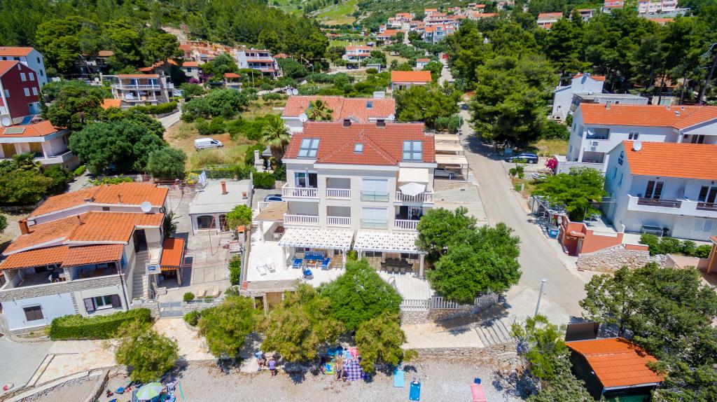 Nově postavené a moderně vybavené apartmány se nacházejí přímo u pláže v klidném městečku Ivan Dolac. Apartmány Unit 1 a Unit 6 jsou pro 4 osoby, skládají se z ložnice s manželskou postelí 160 x 200, koupelny se sprchovým koutem, kuchyně a jídelny a obývacího pokoje se SAT-TV a rozkládací pohovkou, a terasa s krásným výhledem na pláž, moře a ostrovy. Apartmány P1 a P2 jsou pro 8 osob, skládají se ze 3 ložnic a rozkládací pohovky v obývacím pokoji, 2 koupelen, plně vybavené kuchyně s myčkou, jídelny a jídelního stolu na velké terase vpředu s výhledem moře. Byt P2 má větší plochu než P1, protože má jednu celou ložnici a koupelnu o patro níže. Restaurace a kavárny jsou vzdálené pouhých 20 metrů a obchod 100 metrů od apartmánu. Přestože se dům nachází v samém centru tohoto malého turistického městečka, nabízí naprostý klid a soukromí, protože hosty jsou většinou rodiny s malými dětmi, které si užívají krásné pláže a křišťálově čisté moře.