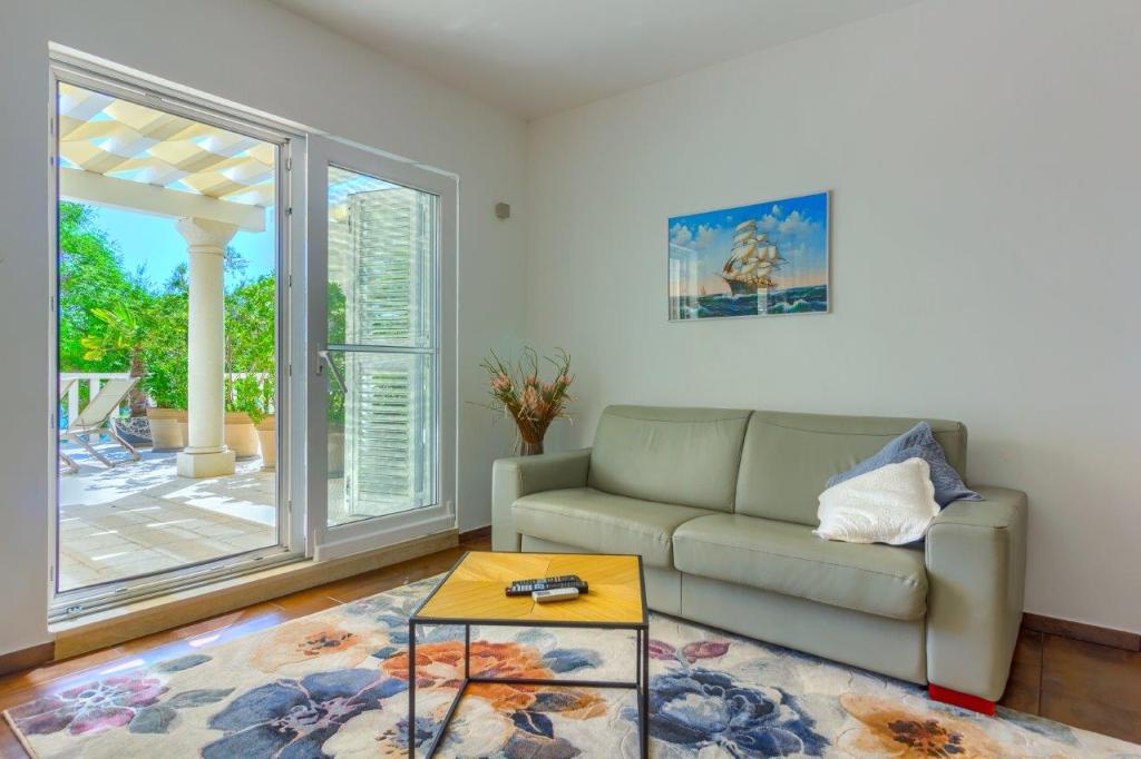 Pobytová taxa je v ceně.Další vybavení a zařízení v ceně: - internet, satelitní TV, klimatizace, žehlička, plně vybavená kuchyň (myčka), pračka je v koupelně, soukromé parkoviště je zajištěno - ložní prádlo se mění jednou týdně, ručníky dvakrát za rok týden v případě potřeby i častěji Možnost výletů motorovým člunem s kapitánem a dopravy na blízké ostrovy, ostrůvky a skryté zátoky. Dostupná cena.