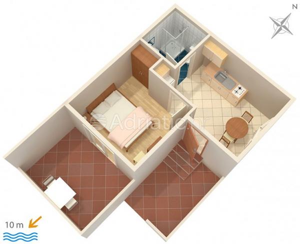 Dům se nachází přímo na pláži a trvá 10 sekund z postele k moři :) Pokud si nepřejete, aby grilování na kamenném krbu, restaurace jsou 50m od domu. Vhodně pro děti, protože je zde prostor pro hru a pláž má zaoblené oblázky.
