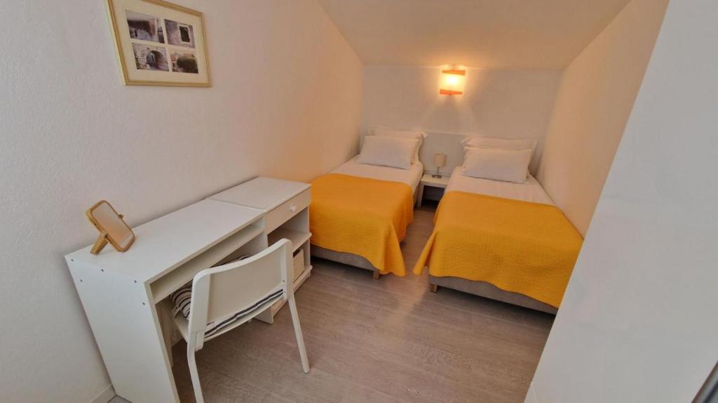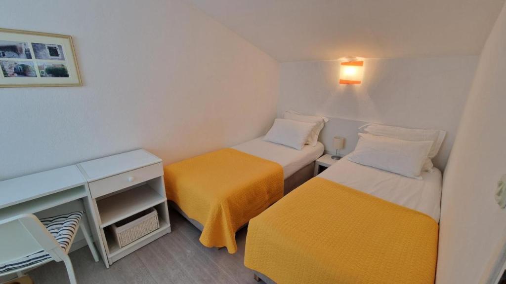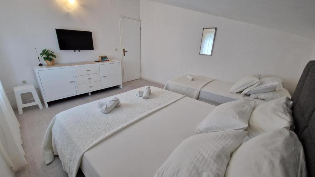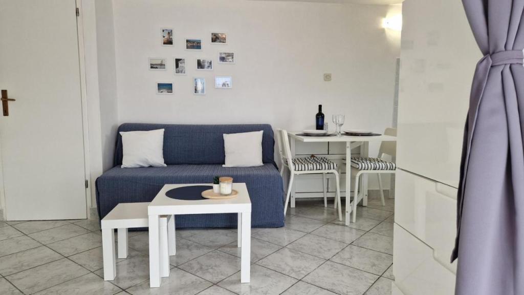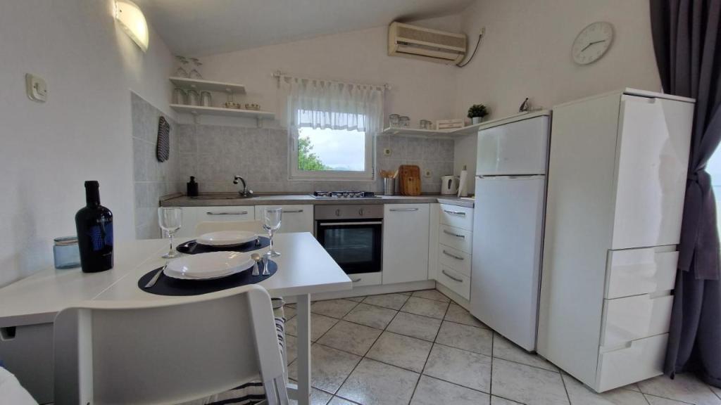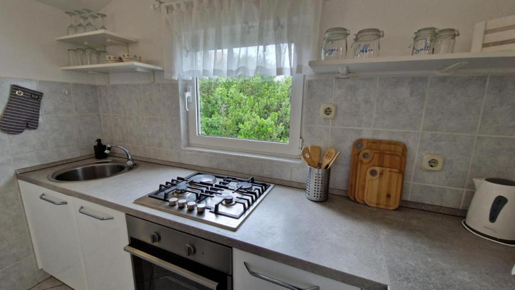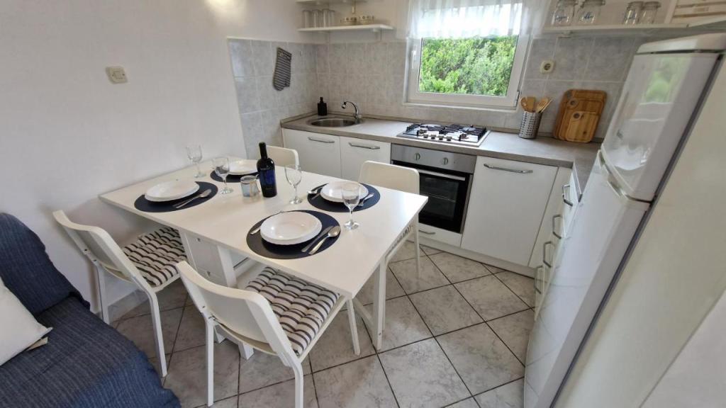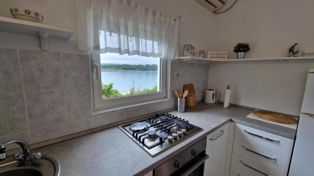 Užijte si dovolenou pouhých 5 metrů od moře v klidné zátoce Knež na ostrově Iž. Tento pohodlný apartmán se dvěma ložnicemi nabízí prostornou terasu s krásným výhledem na moře a zadarské souostroví - ideální pro ranní kávu nebo večerní relaxaci. Apartmán je klimatizovaný a plně vybavený pro pohodlný pobyt: kuchyň se vším potřebným vybavením, pračka, bezplatné Wi-Fi, TV, psací stůl, pohodlný obývací pokoj a vlastní koupelna. Hosté mohou také využít bezplatné parkování v blízkosti. Na zadní terase je k dispozici gril. Apartmán se nachází v klidném a relaxačním prostředí a je ideální volbou pro rodiny s dětmi a každého, kdo hledá klidnou dovolenou u křišťálově čistého moře.