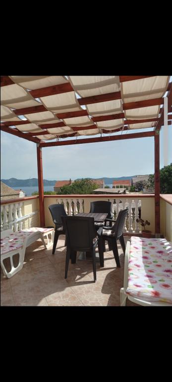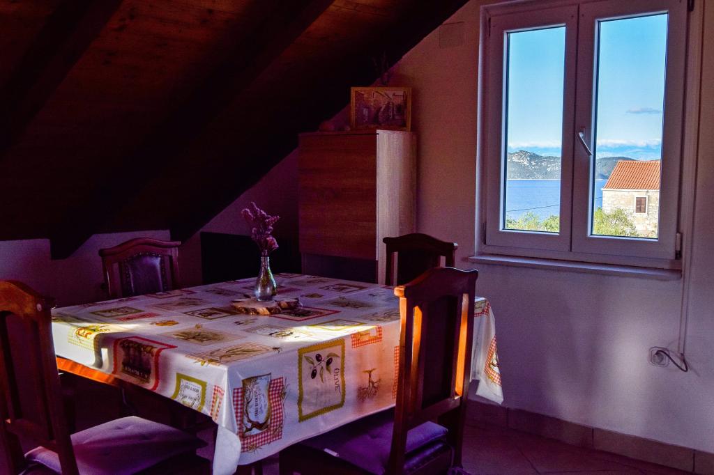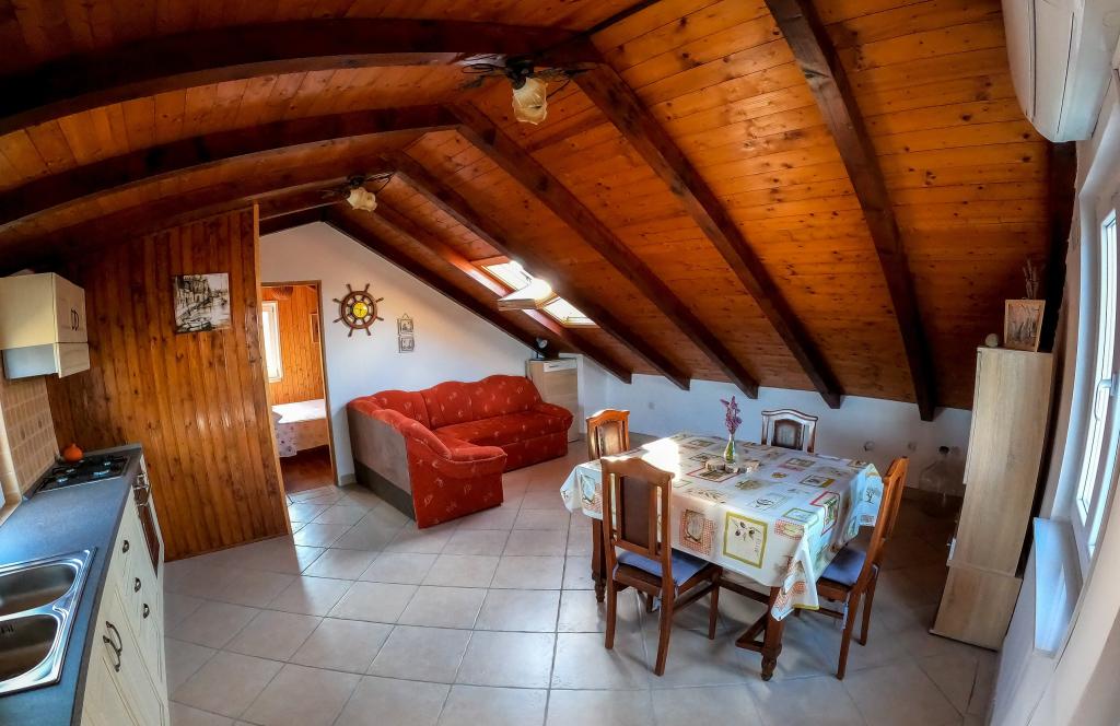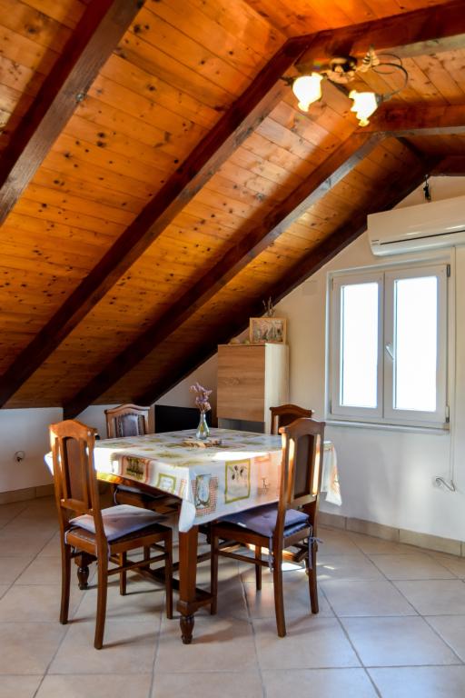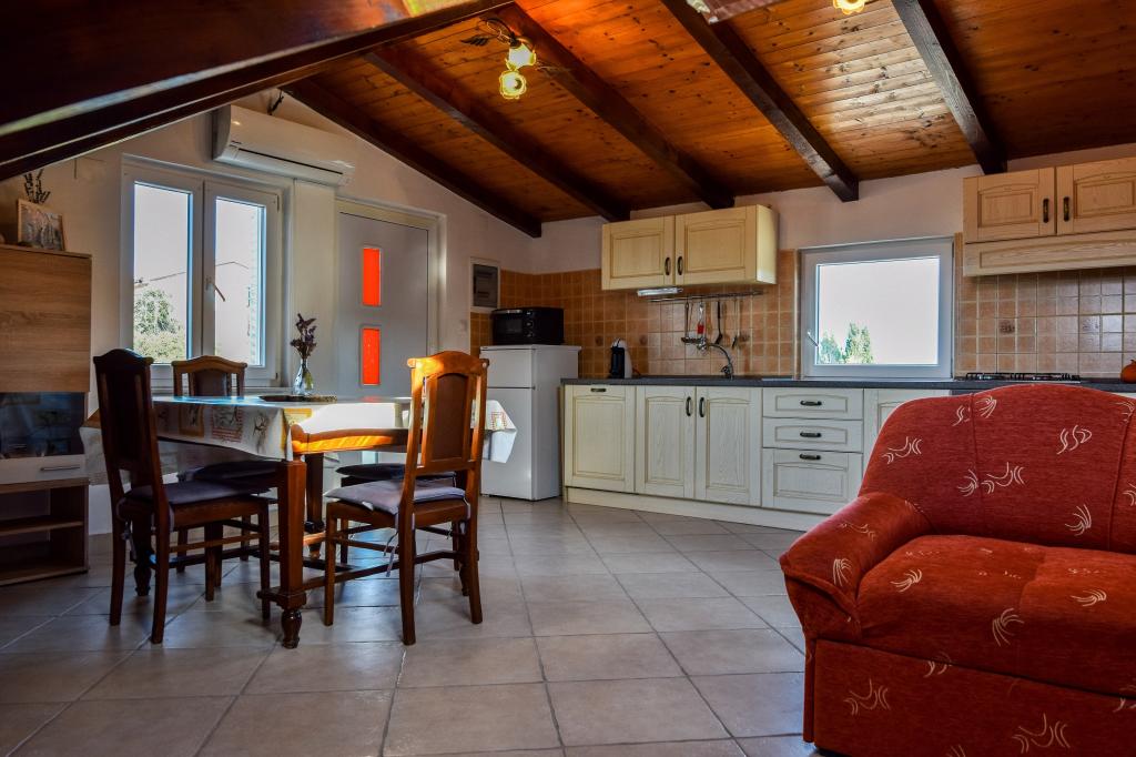 Apartmán se nachází v klidné části Malého Iže na samém vrcholu kopce, takže má krásný výhled na moře a okolní ostrovy. Má pěknou velkou terasu s posezením a lehátky. Terasa je krytá pergolou. Má vlastní bezplatné parkoviště. Je to 10 minut chůze od moře a pláže, stejně jako do obchodu. Apartmán se skládá z ložnice, kuchyně, obývacího pokoje, jídelny a koupelny. V obývacím pokoji je rohová pohovka, kterou lze rozložit na dvě lůžka. Má klimatizaci, TV a kuchyň je vybavena myčkou nádobí a kompletním nádobím. V obci jsou dva café bary, dvě pizzerie a několik restaurací. Je zde obchod. Pláže jsou kamenné, oblázkové, betonové a písčité. Je zde hodně borovicového lesa, rozmanité zeleně a turistických stezek. Na ostrově se nachází další osada, Veli Iž, se dvěma obchody, několika restauracemi a café barem.