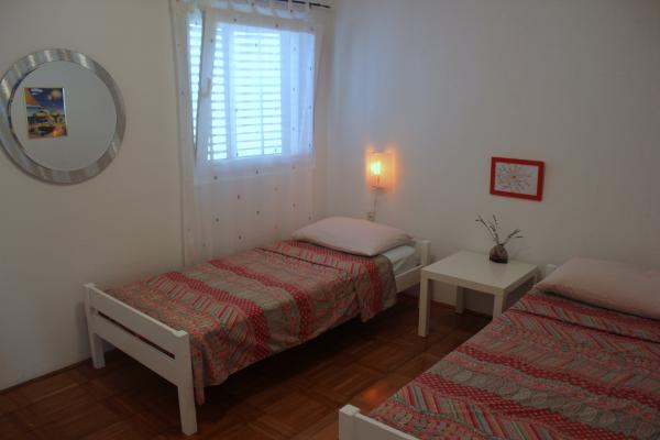 Odpočinek v klidu a apartmány Knežak které se nachází v těsné blízkosti moře na překrásném ostrově Iž. Ostrov Iž na prahu národního parku Kornati. Od Zadaru, město s 3000 let dlouhá historie, který se nachází hodinu a půl trajektem nebo 40 minut jízdy motorovým člunem. Apartmány Knežak jsou pěkné a dobře vybavené; klimatizace, rádio, TV, ložní prádlo. V domě máte grilování, internet, ... Větší apartmán (až 8 osob), má 3 ložnice, přijímací pokoj, kuchyň, koupelna a velká terasa (30m2) s krásným výhledem na moře a ostrov. Menší apartmány se může ubytovat každý až pro 4 osoby, s ložnicí, kuchyň, obývací pokoj, koupelna, terasa a balkon. Oba mají výhled na moře. Dům s apartmány se nachází přímo na pláži, kde si hosté mohou využít lehátka a slunečníky. Parkování je zajištěno před domem. Z ostrova jistě vyhovovat vašim potřebám, vyplňte vaše smysly a vy ho najdete bezpečně zpátky!