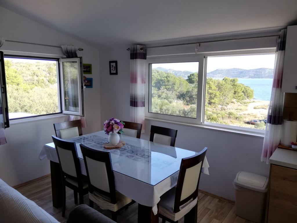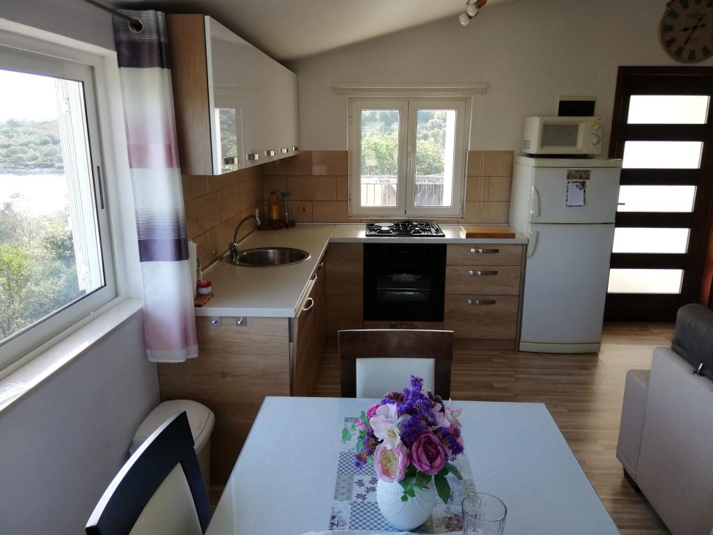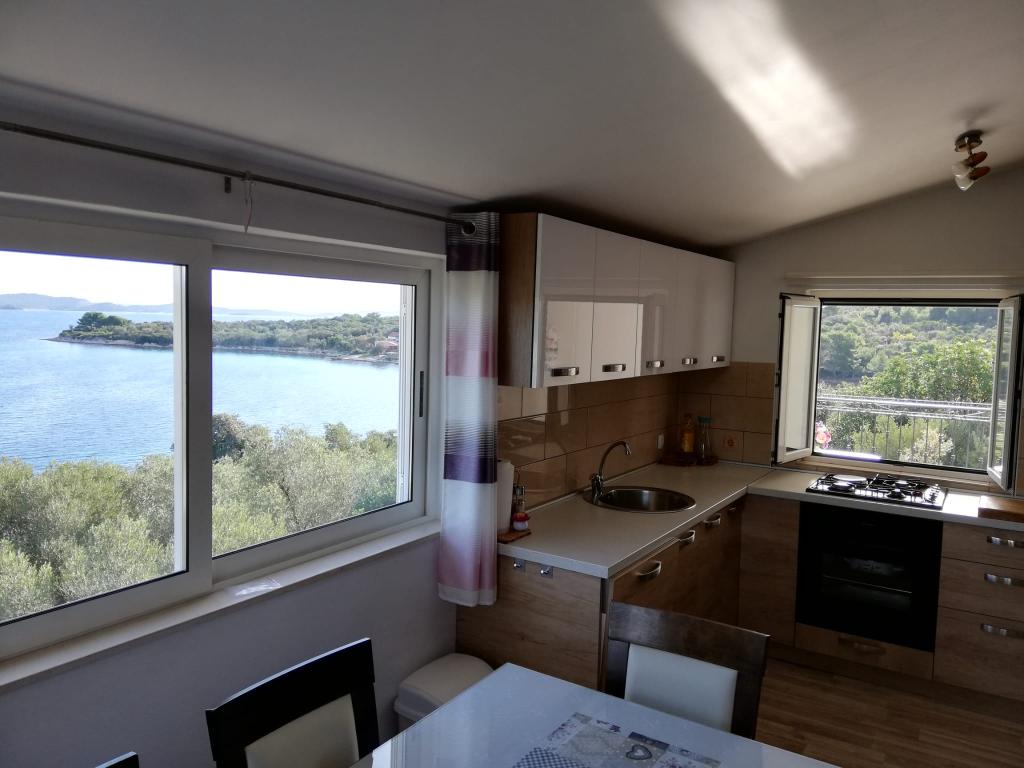 Apartmány Helen se nacházejí na ostrově Mali Iž, velmi blízko moře, v zátoce Bršanj. Dům má gril a parkoviště. Dvě terasy s výhledem na moře se skládají ze 2 podlaží. Spodní patro: 1 pokoj s 1 lůžkem (90 cm, délka 200 cm), 1 velkou postelí (160 cm, délka 200 cm). Kuchyně (varná deska, trouba, mrazák). Obývací pokoj, koupelna. Horní patro: (venkovní schody) obývací pokoj/jídelna 35 m2 se satelitní TV, přijímačem a Wi-Fi. 1 pokoj s velkou postelí (160 cm, délka 200 cm a přistýlkou 90 cm x 200 cm). Druhý pokoj s 1 velkou postelí (160 cm, délka 200 cm), kuchyň (4 varné desky, trouba, mrazák), koupelna. Domácí mazlíčci jsou povoleni.
