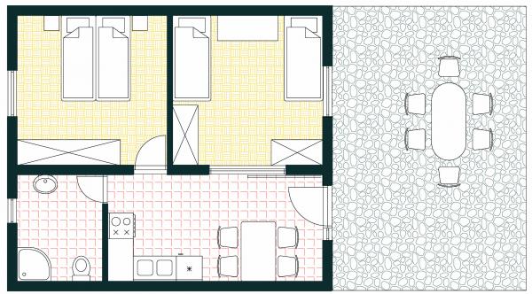 Apartmán jako samostatný obytný dům v klidné části Mali Iž, 200 metrů od přístaviště trajektů s odděleným parkovacím místem. Apartmán v přízemí má obývací pokoj s kuchyní a koupelnou, který lze použít jako samostatnou pokoj nebo studio apartmán, a v přízemí jsou 2 pokoje a koupelna. Samostatný dvůr s grilem pro celodenní pobyt. Vzdálenost od pláže je 5 minut chůze. Bezpečné lůžko pro člun a parkoviště pro stezky ,, wifi internet.