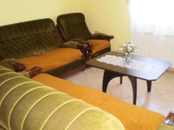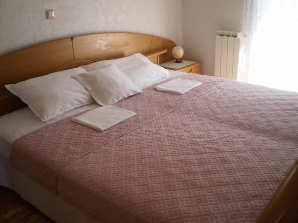 Byt se nachází v rodinném domě ve druhém patře. Povrch 100 metrů čtverečních, má tři dvoulůžkové ložnice a dvě oddělené postele, velký obývací pokoj. V bytě je TV, satelit, Wi-Fi, klimatizace. To má velkou terasu s výhledem na moře, velké nádvoří s možností parkování. V bytě se nachází 200 metrů od moře. , ,