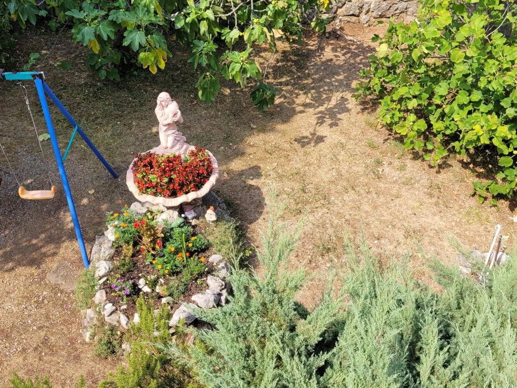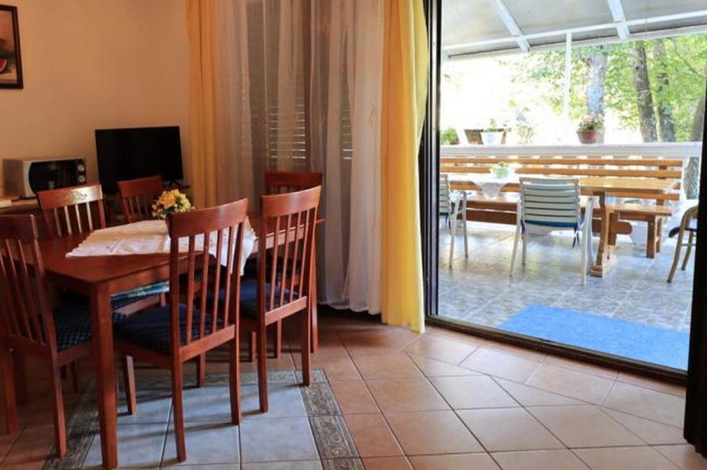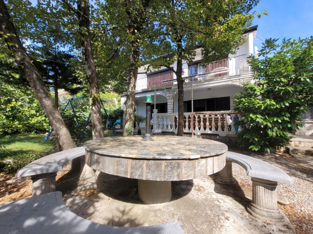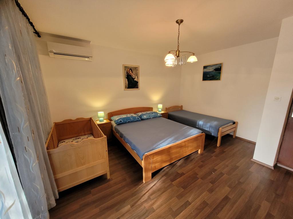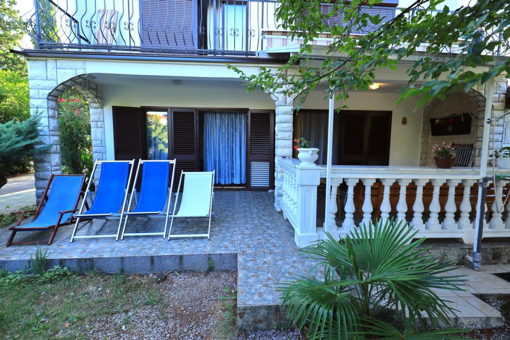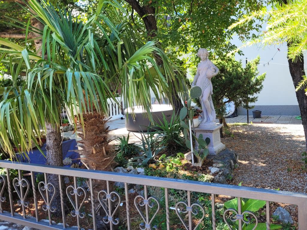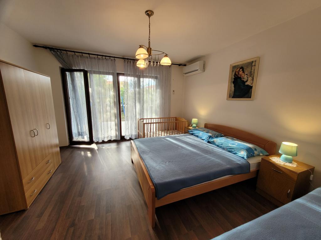 Byt v klidné části s vlastní zahradou a velkou terasou. Ubytování se nachází 10 minut chůze od pláže. Ostatní: velký gril pouze pro hosty apartmánu, parkování ve dvoře pro dvě auta, parčík s houpačkou pro děti, klimatizace... Domácí zvířata povolena za příplatek 5 EUR na den.