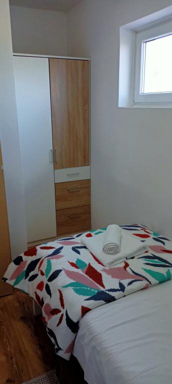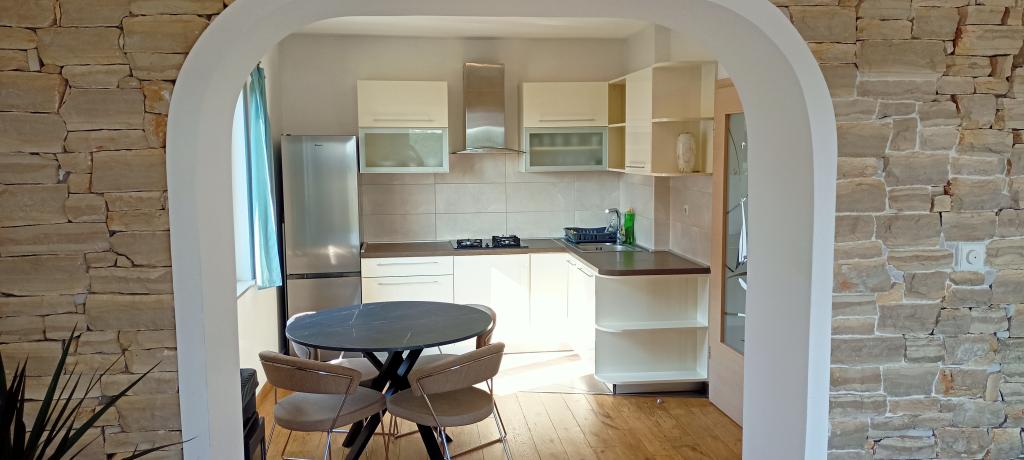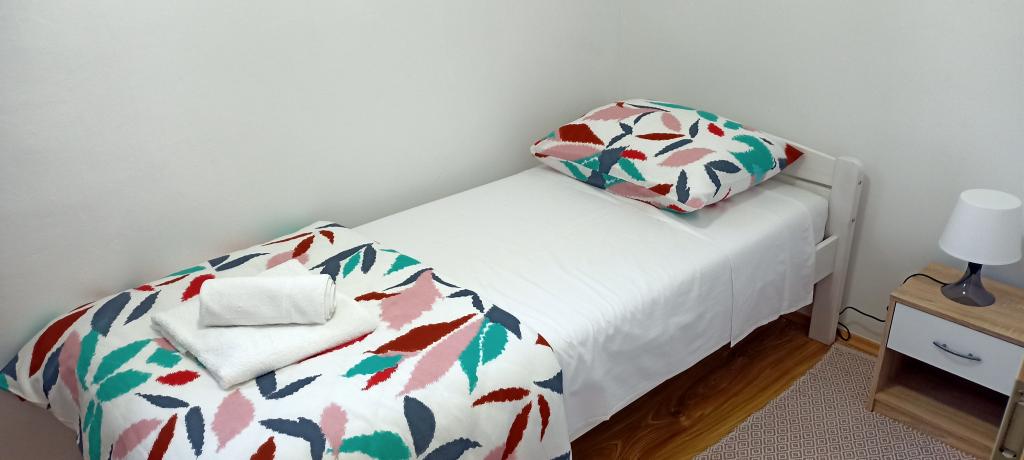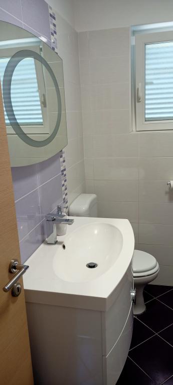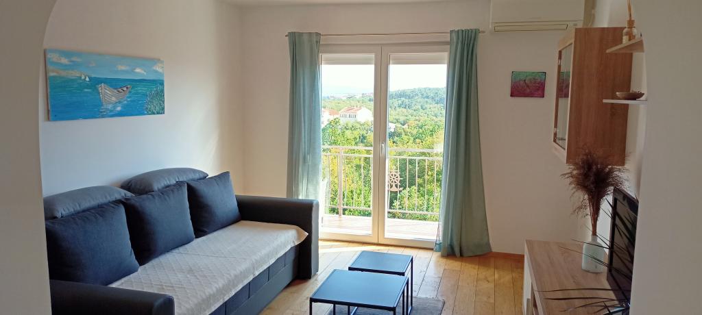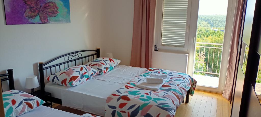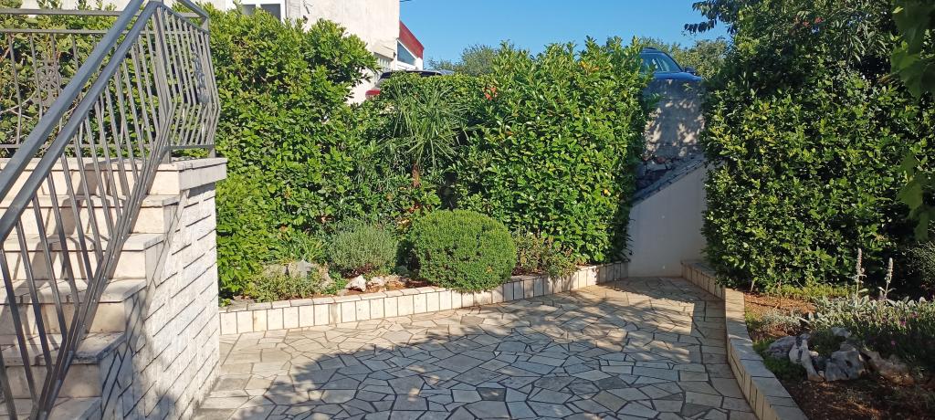 Moderní a plně vybavený apartmán pro šest osob. Nachází se v prvním patře rodinného domu, v klidné části města, obklopen zelení. Ubytování je asi 10 minut chůze od hlavní pláže. Byt je o velikosti 75 m2 a sestává z obývacího pokoje s kuchyní a jídelnou, dvou ložnic, chodby, koupelny a balkonu. K bytu patří venkovní terasa a uzavřené parkoviště pro tři vozidla.