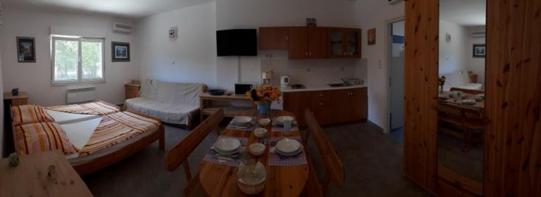 Jadranovo u Crikvenice - nové apartmány k pronájmu s využitím rodinného bazénu. Bazén je v provozu od 17. června do 15. září. Apartmán pro 4 osoby - maximálně včetně dětí - v přízemí o rozloze 35 m2 se soukromou terasou 14 m2. Skládá se z apartmánového pokoje (2 lůžka 90 × 200 a rozkládací pohovka), kuchyně s jídelním koutem a ložnice s manželskou postelí a koupelnou. Studiový apartmán pro 3 osoby - maximálně včetně dětí - v přízemí o rozloze 32 m2 se soukromou terasou 10 m2. Skládá se z apartmánového pokoje vybaveného třemi samostatnými lůžky (2 lůžka 90 × 200, rozkládací pohovka), kuchyně s jídelním koutem a koupelnou. Ceny jsou založeny na min. 6 nocí. Sleva na delší pobyty. Soukromé oplocené parkování na pozemku. Bezplatný WIFI internet.