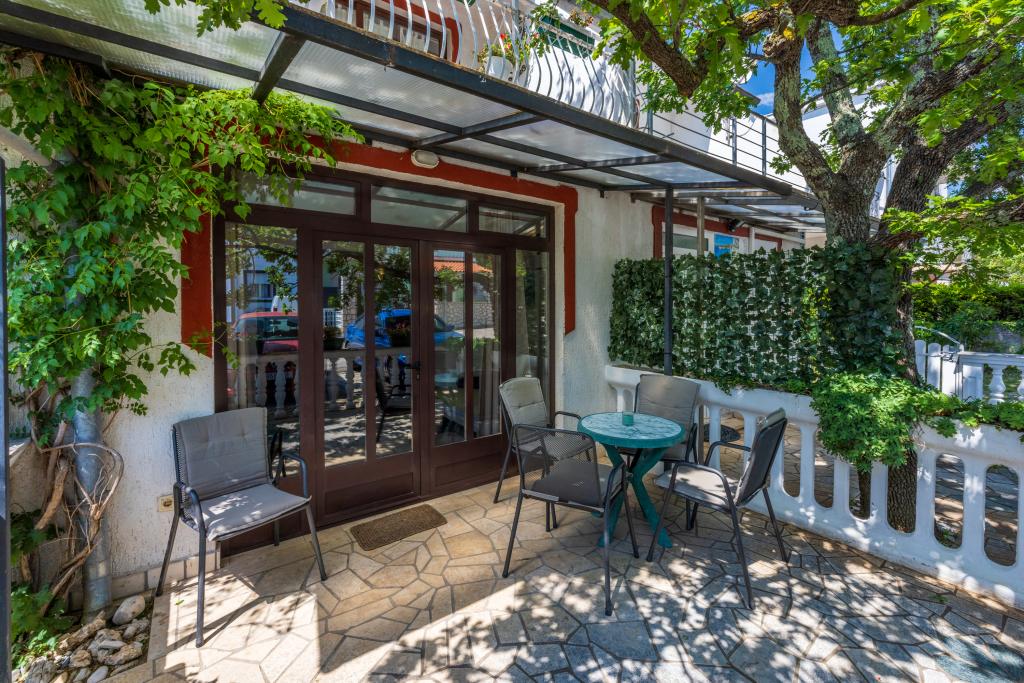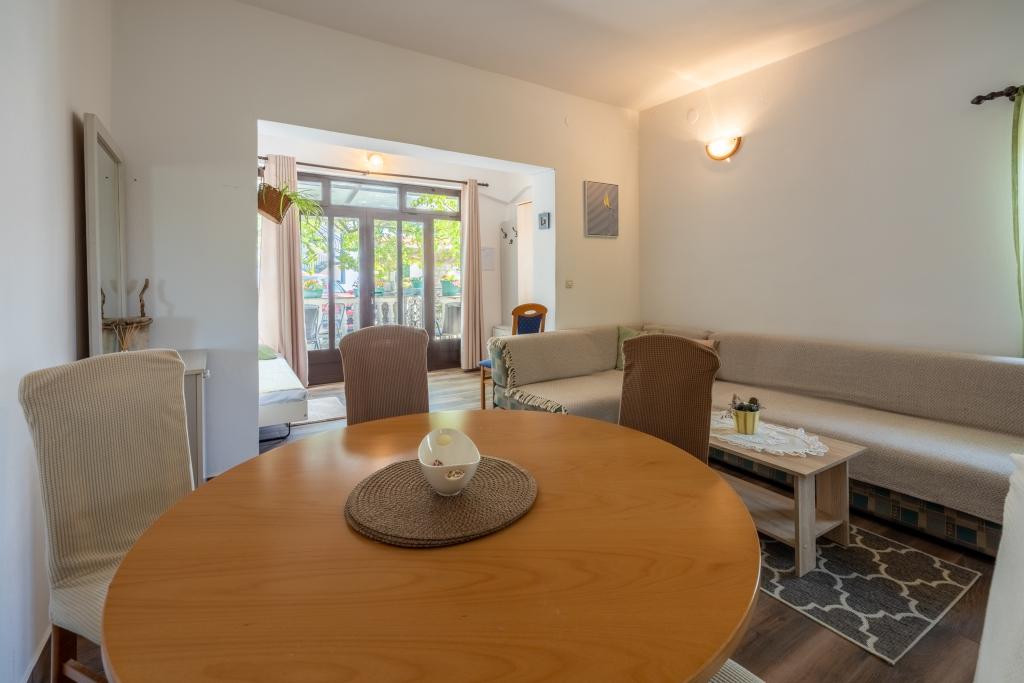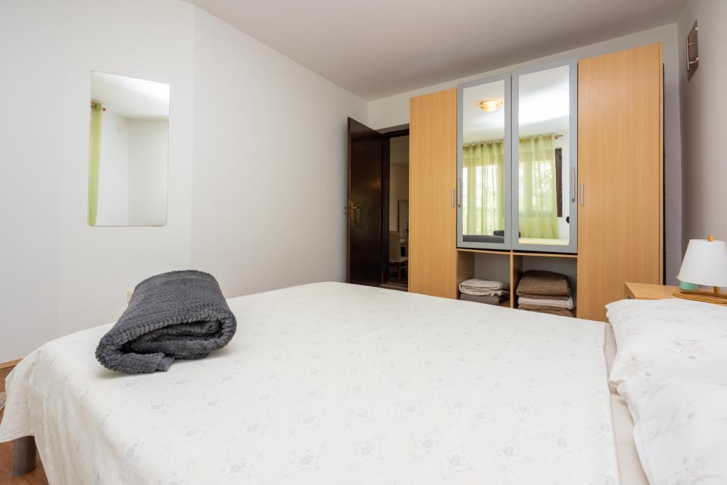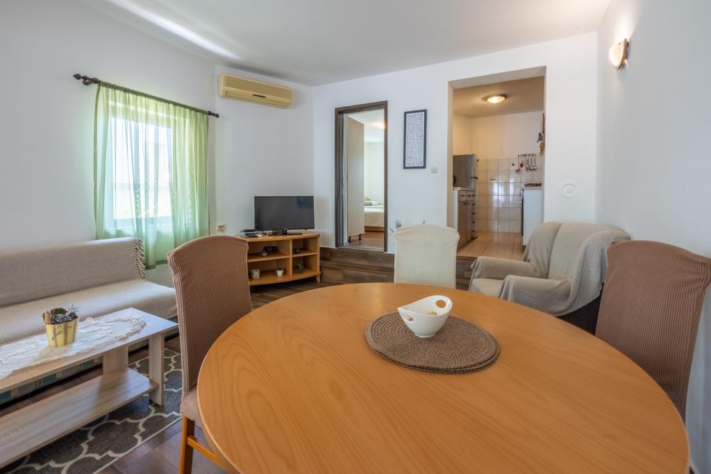 Klimatizovaný apartmán se 2 balkony, v klidné odlehlé ulici, v malé rybářské vesnici Jadranovo. K bytu patří zahrada, gril, WI FI a parkování. Byt má dva balkony nebo terasy, 1 ložnici, obývací pokoj, kuchyň a WC. Máte 10 minut chůze na nejbližší pláž a 15 minut chůze na druhou. Druhá pláž je přístupná autem za 2 minuty a parkování je zdarma přímo na pláži.