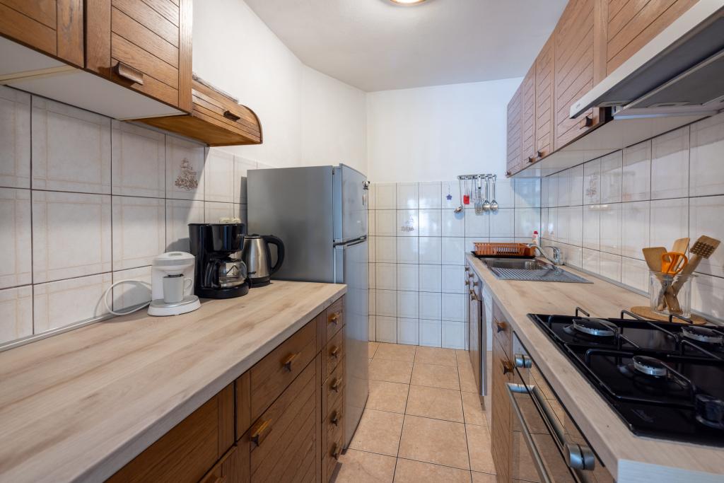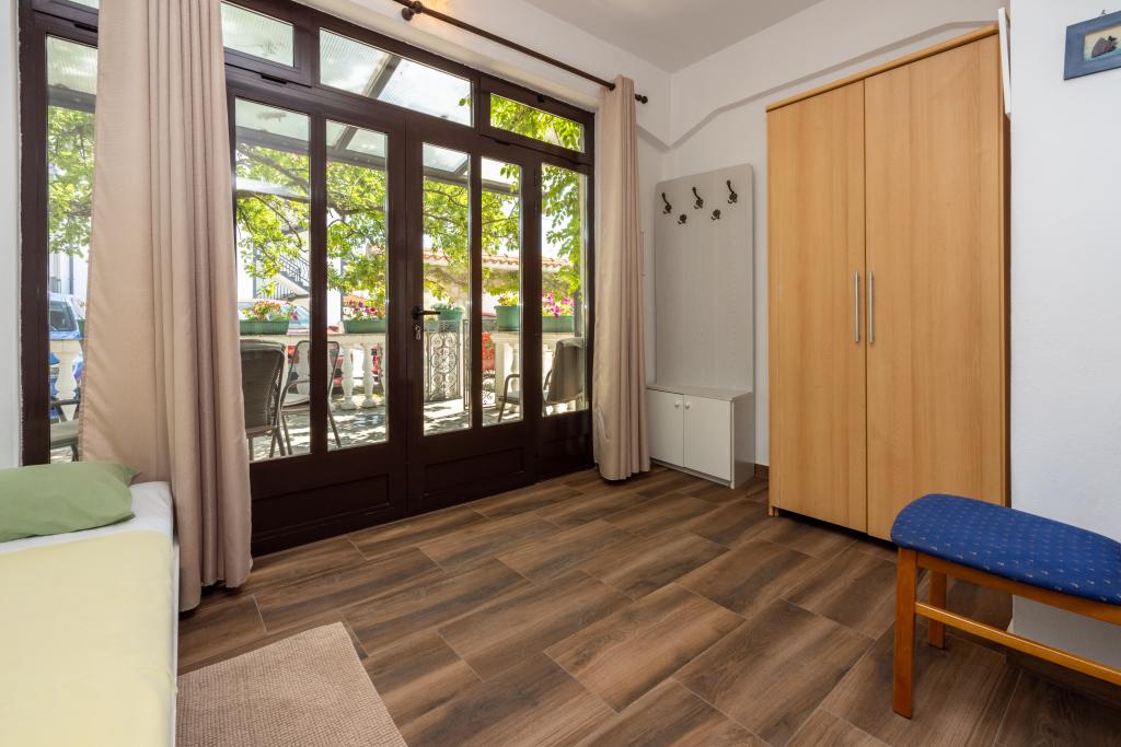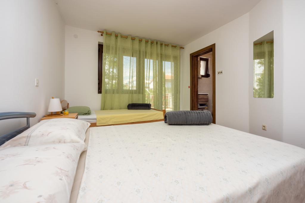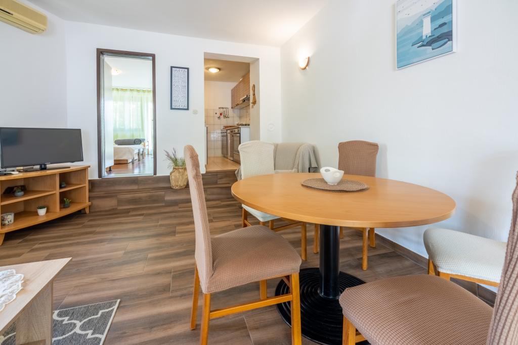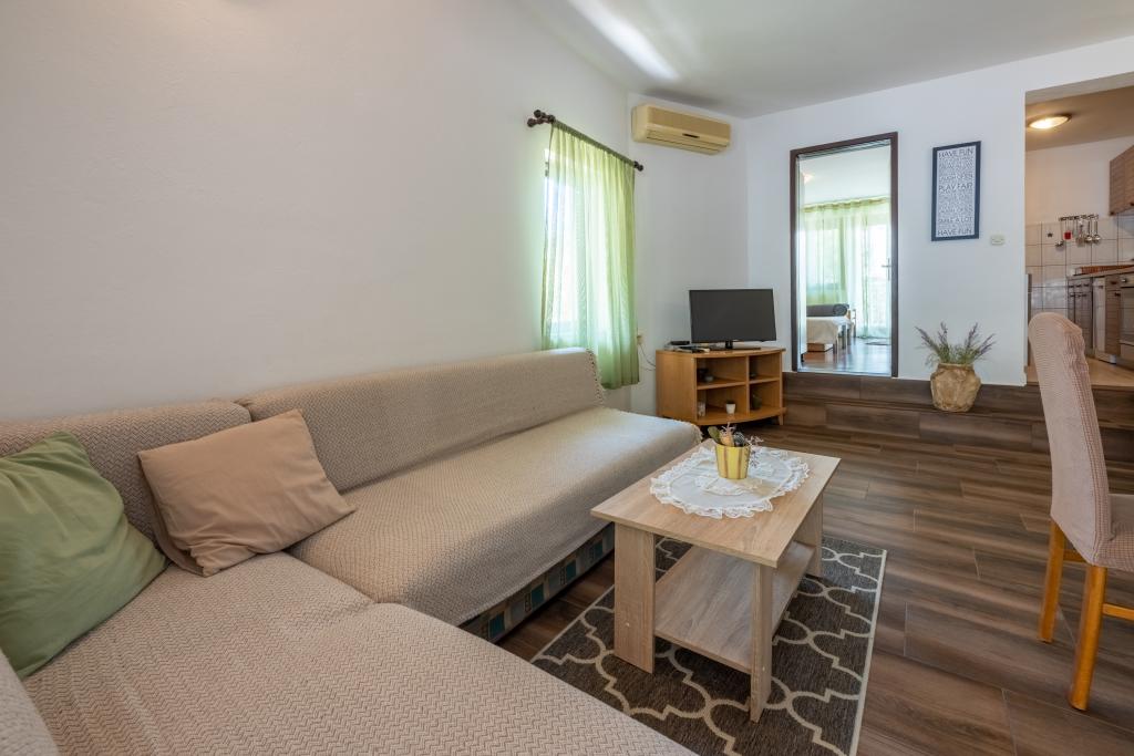 Klimatizovaný apartmán se 2 balkony, v klidné odlehlé ulici, v malé rybářské vesnici Jadranovo. K bytu patří zahrada, gril, WI FI a parkování. Byt má dva balkony nebo terasy, 1 ložnici, obývací pokoj, kuchyň a WC. Máte 10 minut chůze na nejbližší pláž a 15 minut chůze na druhou. Druhá pláž je přístupná autem za 2 minuty a parkování je zdarma přímo na pláži.