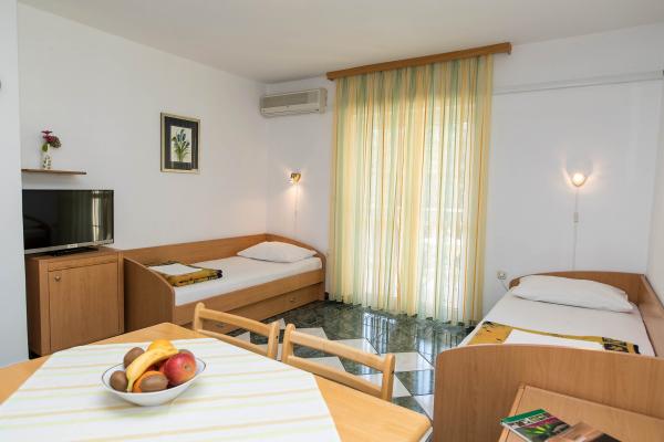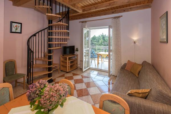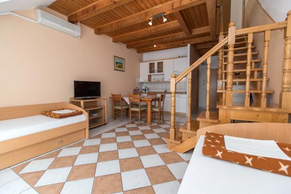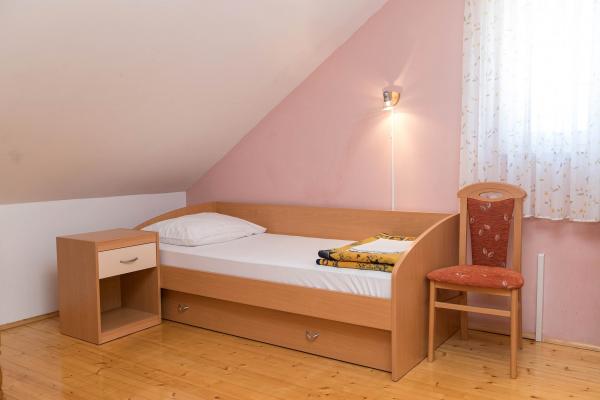 Ubytování je velmi dobré, paní si všímá všeho, ale domů jsme přišli dříve, protože třetí den dorazily dvě rodiny. Svítání nám projelo hlavu ve 12 hodin v noci, běhali, skákali, tahali židli, což znemožňuje spát. Ráno jsme mluvili s paní domácí, řekl jim. Další den se párty opět rozjela. Znovu jsme požádali hostitele, aby nic nedělal. Tu věc nevyřešil, ale peníze vám nevrátí, pokud půjdeme domů. Poté jsme přišli domů. Něco bych navrhl. V Njivicích bylo na chodbě psáno velkými písmeny do 22-08 prosíme o ticho. jdeme si sem odpočinout. Mimochodem, zarezervovali jsme si první patro, dostali jsme přízemí a dva dny v ubytování jsme cítili silný cigaretový zápach.