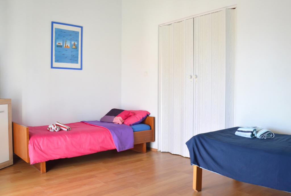JADRIJA, tichý, málo místa v borovém lese s dostatkem stínu, voňavého vzduchu, několika typů beach- perfektní dovolenou rodičů a dětí, sportovců ... Jadrijska pláž je také známý pro velké množství vodních sportů, které nabízí návštěvníkům. Ideální místo pro surfaře a windsurfingu, v těsné blízkosti cyklostezek. To se nachází mezi Šibenik a Vodice, přímo naproti ostrovu Zlarin a Prvić a Pevnost St. Nicholas a okolí 2. NP. Krka a Kornati. Když jste v Jadriji není nutné používat auto, protože vše je blízko; supermarket, pizzerie, restaurace, bary, dětské hřiště ... Ve středu Šibeniku, v létě jízda vedení lodi, 15 min. krásný kanál st. Ante. App. má samostatný vchod, 70 m2 s terasami vidět pohled. Má dvě oddělené místnosti; ložnice s postelí a další pokoj s 2 lůžky, toalet- koupelna WC, kuchyň s jídelním koutem a 3 terasy se stolem a židlemi, lehátka, (vpředu, vzadu a po stranách), TV-SAT, klimatizace, wi-fi .. .. Na pláži je 80 m, 2-3 minut. Přes stínu.