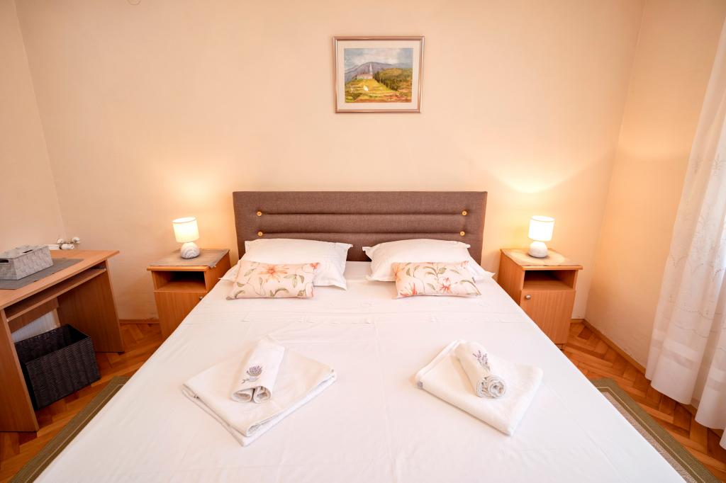 Plně a moderně zařízený byt pro 6 osob se nachází v centru města Jelsa na ostrově Hvar a je ideální pro rodiny s dětmi. Nachází se ve druhém patře rodinného domu a zaujímá rozlohu 85 m2. V bytě jsou dvě ložnice s balkonem, koupelna, kuchyň, obývací pokoj s rozkládací pohovkou. Parkování zdarma a WI FI v ceně.
