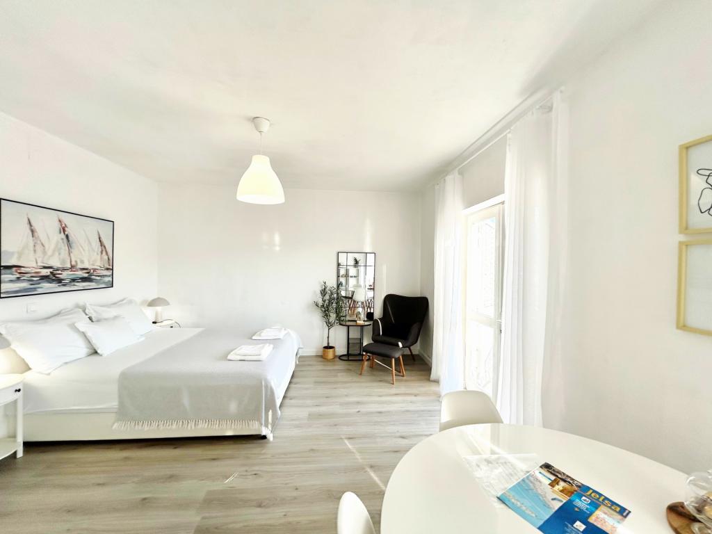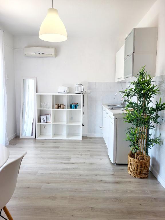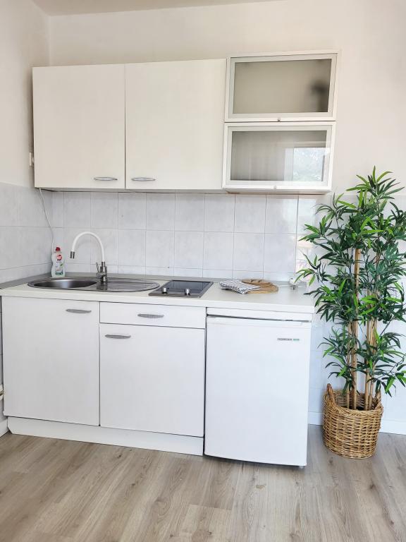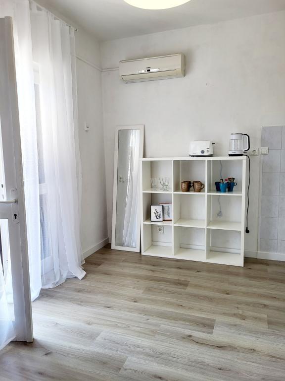 Objekt se studiovými apartmány se nachází v klidném prostředí převážně rodinných domů, přibližně 400m od moře a první pláže a 500m od centra.