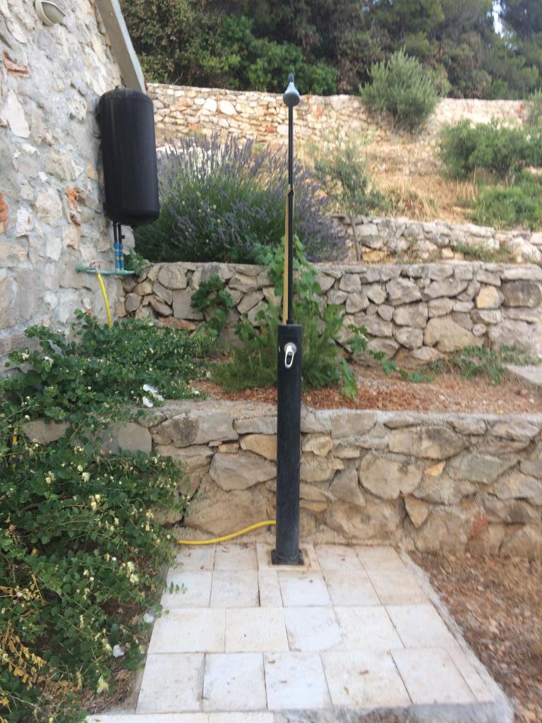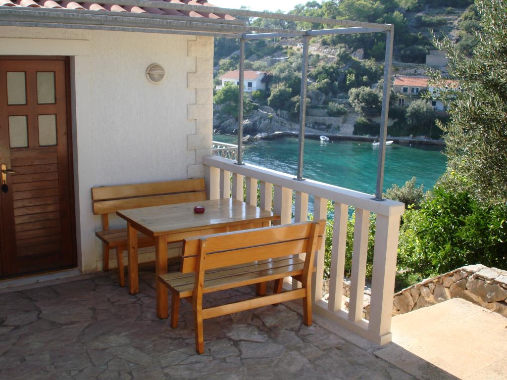 Moderní apartmány v obci Gdinj, záliv Torac. Dům na nábřeží v klidné zátoce pouhých 50m od oblázkové pláže. Vedle domu je betonová přístaviště pro lodě, které lze také použít k plavání a opalování. Apartmány jsou zásobovány elektřinou a horkou vodou ze solárních zdrojů. Hosté mohou také využít sdílený gril na dřevo a dřevěné uhlí. Malý obchod s potravinami se základními potravinami a nápoji a menší restaurace se nacházejí v přilehlé zátoce jen asi 300 metrů od hotelu. Tři zátoky dále, asi 2 km daleko, se nachází rybí restaurace. Do centra obce, kde je o něco větší obchod a restaurace je asi 4 km. Nejbližší lékárna, lékárna a supermarket se nachází v Jelsa, asi 25 km daleko.