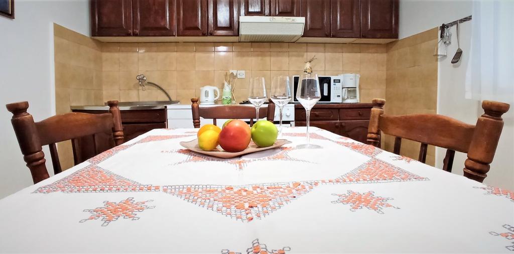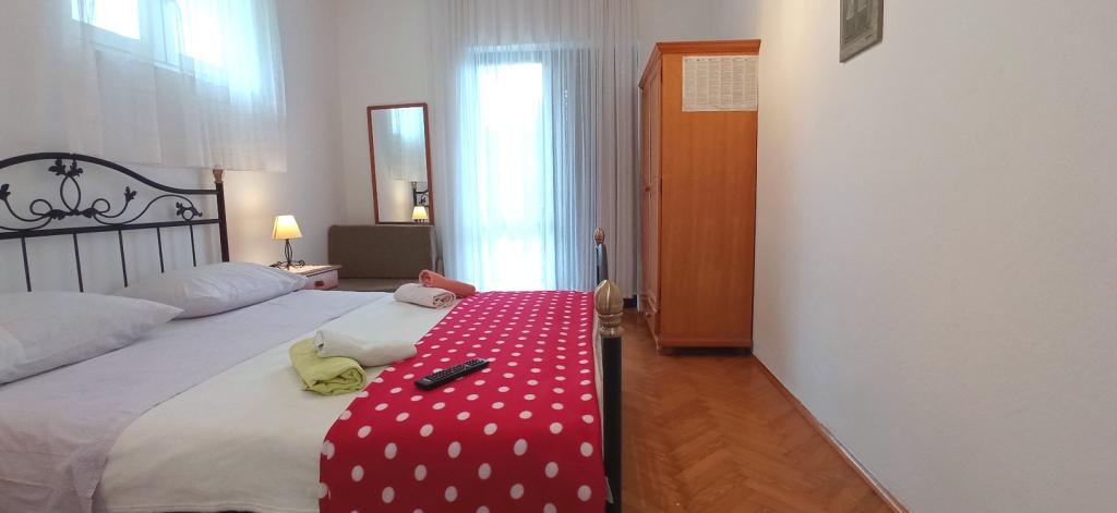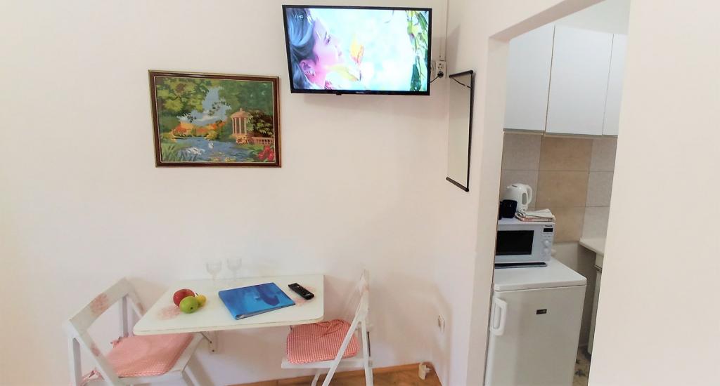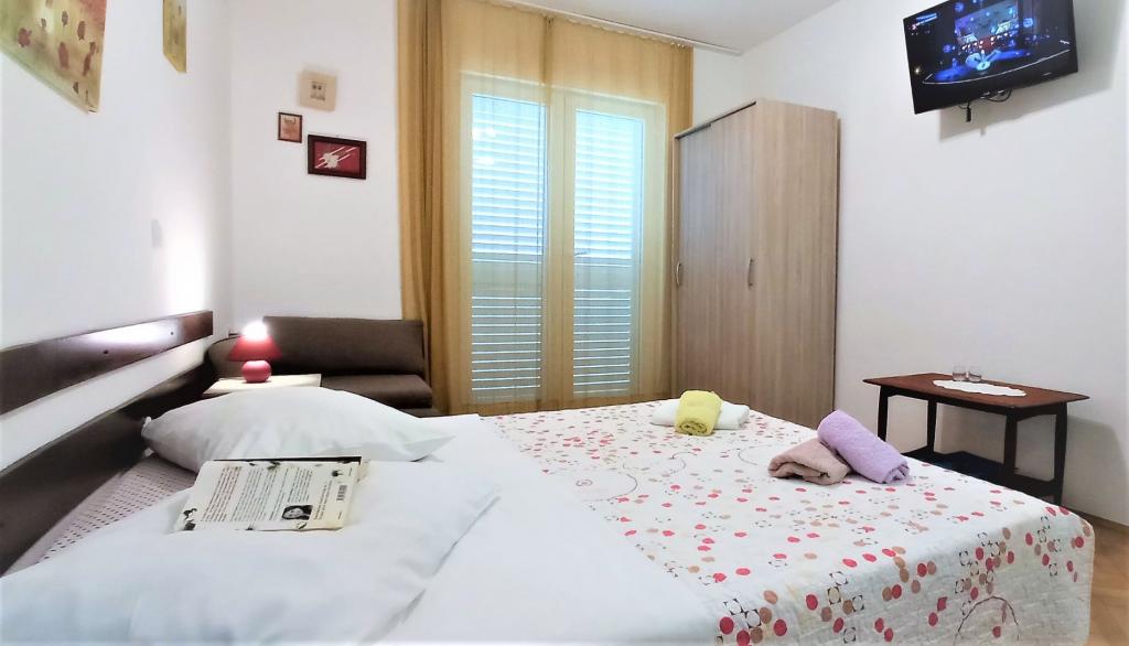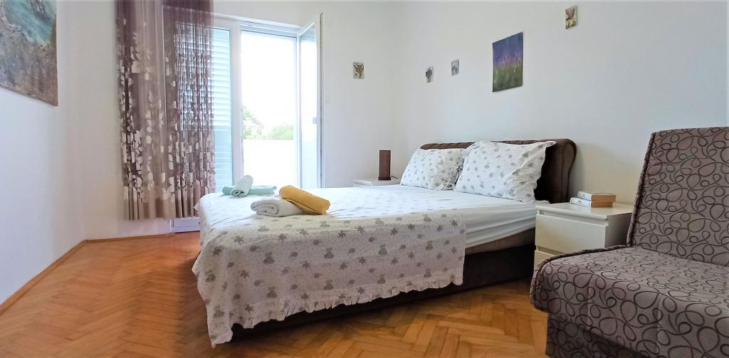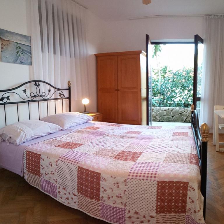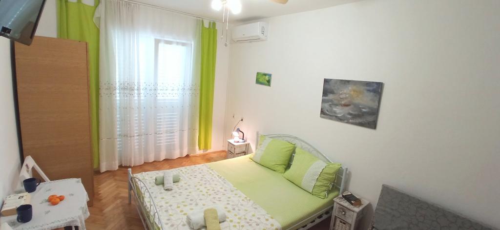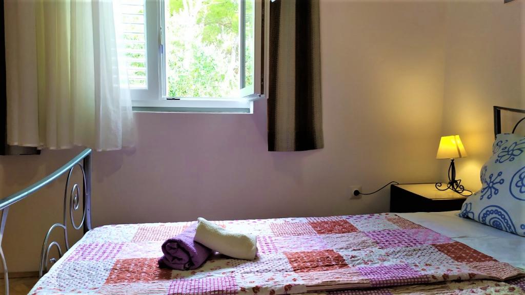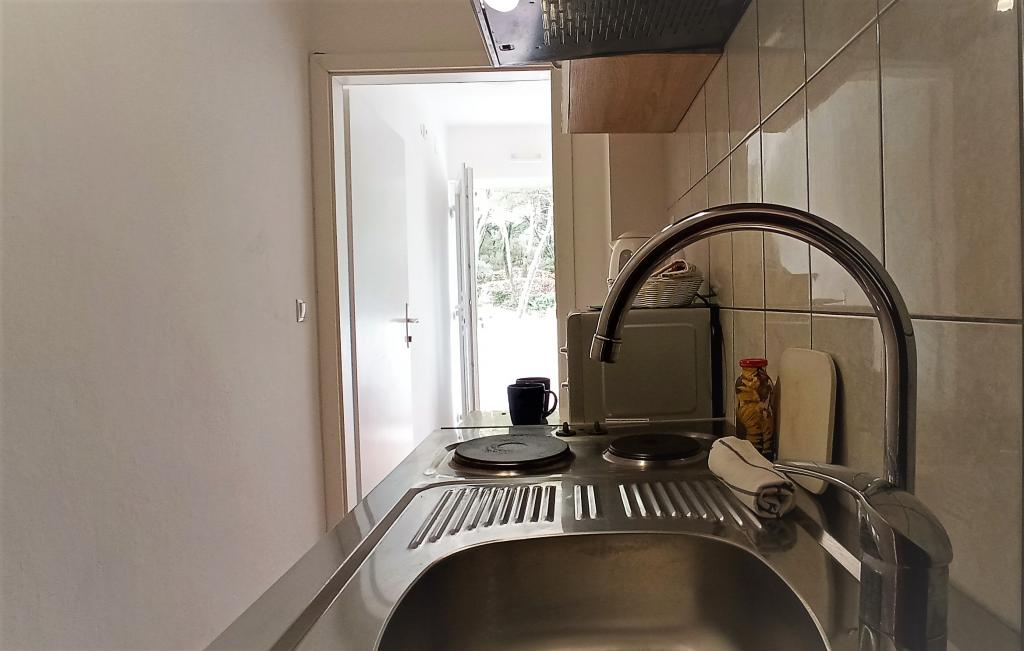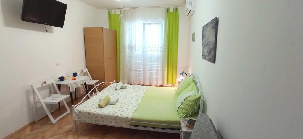 70 metrů od moře. Apartmány se nacházejí mezi Jelsa a Vrboska, ostrov Hvar, na klidném místě s několika oblázkovými plážemi a jednou písečnou pláží poblíž. V našem domě nabízíme 3 studio apartmány. Každý apartmán má ložnici, koupelnu a kuchyňský kout a stůl a židle v přední části bytu vedle zahrady. Studio apartmán 3 má velkou terasu 2 pokoje. Každý z nich má vlastní WC, kuchyň a balkon se stolem a židlemi a výhledem na moře. Je také možné si pronajmout obě místnosti jako apartmán protože mají jeden společný vchod, který je oddělen od ostatních bytů VelkýApartmán -AP4 má dvě ložnice, velká kuchyň s jídelnou a obývacím pokojem, dvě koupelny. Každý pokoj má postel pro dvě osoby. Jeden z pokojů má také přistýlku a balkon s stůl a židle pro 2 osoby. Z balkonu je výhled na moře. V obývacím pokoji se nachází LCD TV a pohovka, která může být rozšířena na postel pro 2 osoby. V přední apartmánu, mezi olivový strom je terasa se stolem a židlem