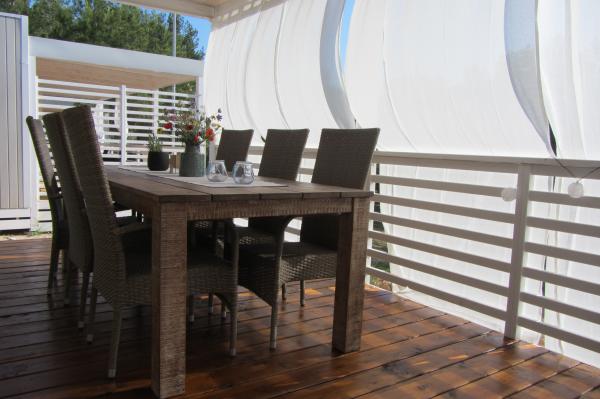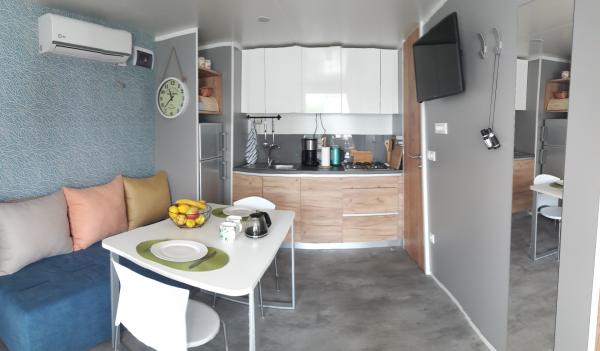 Luxusně vybavené nové mobilní domy se nacházejí v jednom z nejkrásnějších kempů na pobřeží Jaderského moře. Kemp se nachází na ostrově Murter v zátoce Lovišće. Mobilní dům 30 m² obsahuje 2 ložnice (včetně ložního prádla), 2 koupelny se sprchou a fénem (včetně ručníků), obývací pokoj s TV a plně vybavenou kuchyní (hluboká mraznička, rychlovarná konvice, kávovar, nádobí, ...). Venku je prostorná velká terasa o velikosti 30m2 s jídelním stolem pro 6 osob a salonkem pro odpočinek. Objekt je klimatizovaný, má internet zdarma, satelitní příjem, gril ... V areálu je restaurace, pekařství, kavárna, dětské hřiště a animace pro děti, různé sportovní aktivity (tenisové kurty, golfová hřiště, stolní tenis, plachetnice ...) ... Pláž je betonová nebo oblázková, upravená pro děti, vybavená sprchami a má aquapark.