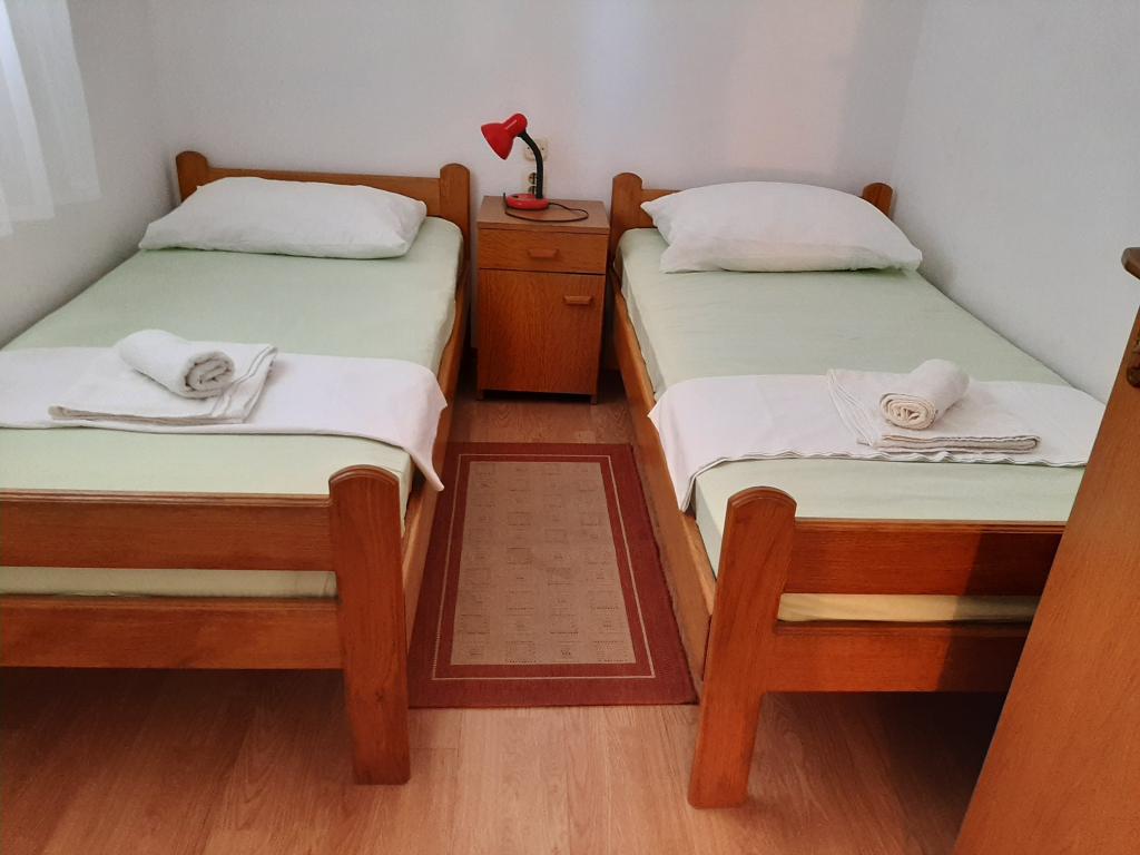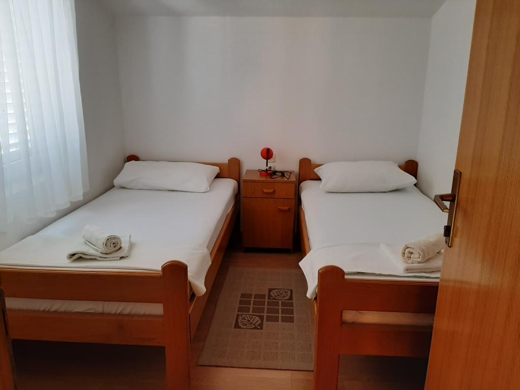Apartmány Cvrčak se skládají ze dvou studio apartmánů v prvním a druhém patře. Oba mají stejné rozložení pokojů a skládají se ze dvou ložnic, z nichž jedna má manželskou postel, kuchyně propojené s obývacím pokojem a koupelny. Do jedné místnosti se vstupuje z přízemí. obývací pokoj a ve druhém od schodiště. Oba obývací pokoje se otevírají na prostorné terasy s výhledem na moře, město a přístav. Za domem je hostům k dispozici terasa s grilem. V blízkosti apartmánu se nachází pláž s vybavením pro děti, 3 minuty chůze, obchod 10 minut chůze a ACI Marina Jezera a škola plachtění 1 minutu chůze. V blízkosti je několik oblázkových a betonových pláží a na ostrově je také známá písečná pláž Slanica. Krásná promenáda spojující Jezera a Tisno je 10 minut chůze od hotelu, vhodná pro pěší i cyklistické výlety. V blízkosti apartmánu jsou národní parky Kornati a Krka. Doporučení ubytování pro účastníky školy plachtění. Apartmány jsou plně vybaveny a parkování je zajištěno před budovou.