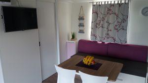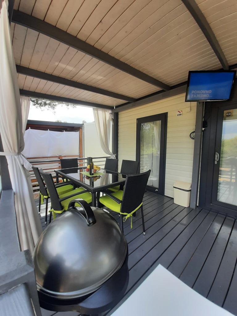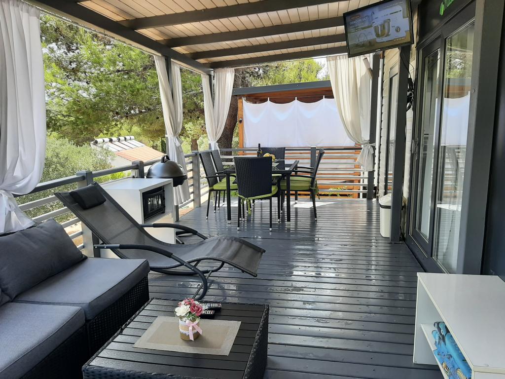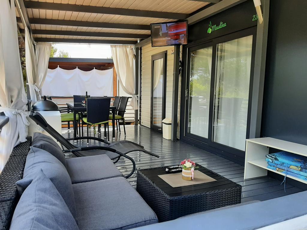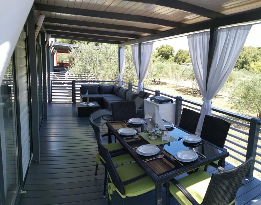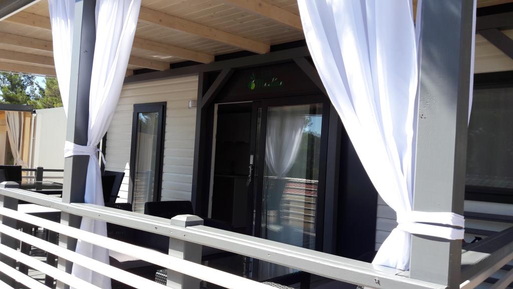 Mobilní dům Olive se nachází v turistické vesnici Jezera Village, hned vedle oblázkové pláže. Nabízí skutečný středomořský zážitek, výhledy na moře, klid divočiny a aromatickou vůni okolních stromů a rostlin. Hostům kempu je k dispozici celá řada zařízení; fotbalové a tenisové kurty, stolní tenis, basketbalové kurty a minigolf. V kempu najdete také mini market, restauraci, bar a vše, co potřebujete pro bezstarostnou dovolenou. Plně vyzdobený a klimatizovaný mobilní dům Olive se skládá ze dvou dvoulůžkových pokojů, jednoho se samostatnými lůžky a jednoho s manželskou postelí, obývacího pokoje s kuchyní a prostorné terasy. Dům Olive je zbrusu nový a moderně vybavený, s velkou a krásnou terasou a poskytuje jedinečnou atmosféru. Příjemné barvy a hrst detailů učiní váš pobyt v chalupě nezapomenutelným.