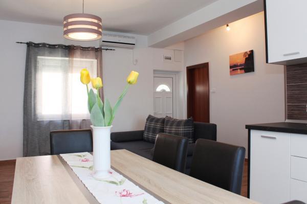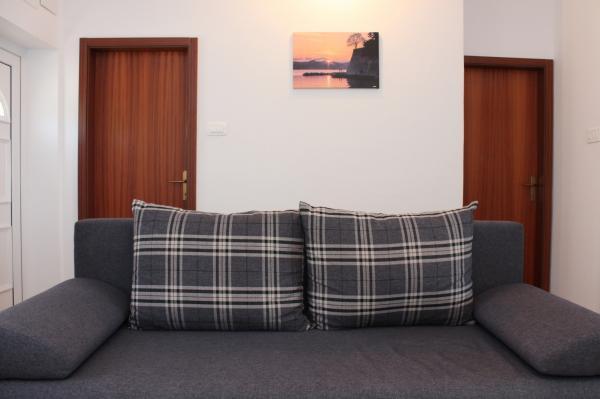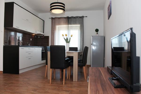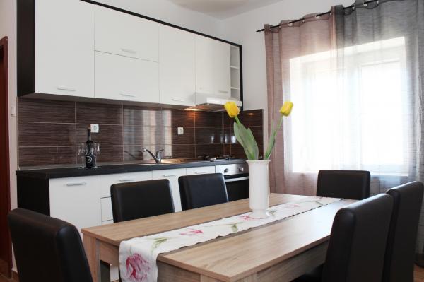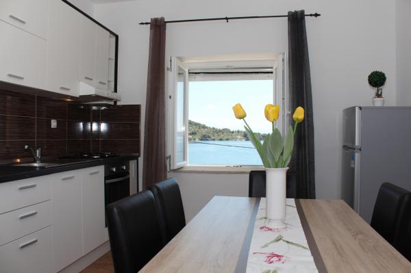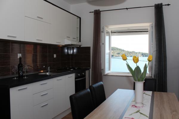 Plně vybavený apartmán v klidné vesničce Kali, nacházející se v první řadě k moři a 15 minut chůze od města Preko. V Preku je trajektový přístav a do přístavu Gaženica se dostanete trajektem za 25 minut a rychlolodní linkou (asi 15 minut) do starého centra města. Interiér bytu (jídelna, 2 ložnice a koupelna) má rozlohu 50 m2 a navíc má 2 balkony. Hlavní balkon má 25 m2 s výhledem na moře. Menší balkon má rozlohu 11 m2. Každý pokoj má vlastní klimatizaci. K dispozici je gril a parkovací místo pod bytem.