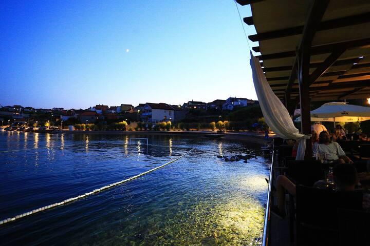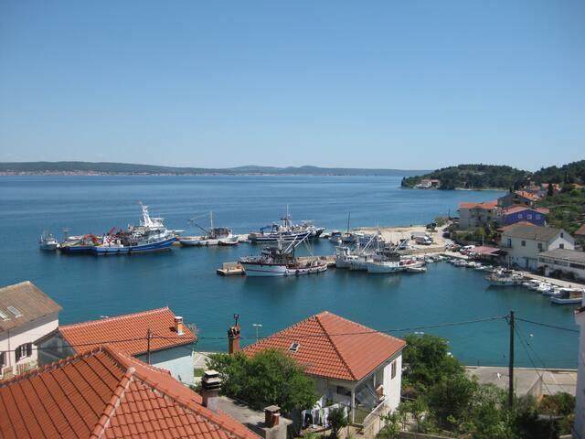 Tina byt se nachází v centru města zárodku v klidné lokalitě bez provozu a davy lidí. restaurace obchod bary pláž jsou vzdáleny méně než 50 metrů vzdálenosti. Byt má velkou vyvýšenou terasu, ze které můžete vidět krásné Zadar plážový rybí restaurace a port, takže pokud máte loď můžete vidět z teras je vždy slunce a světla. autobusová zastávka není daleko a je snadno dostanete trajektem.
