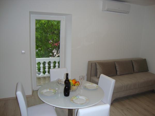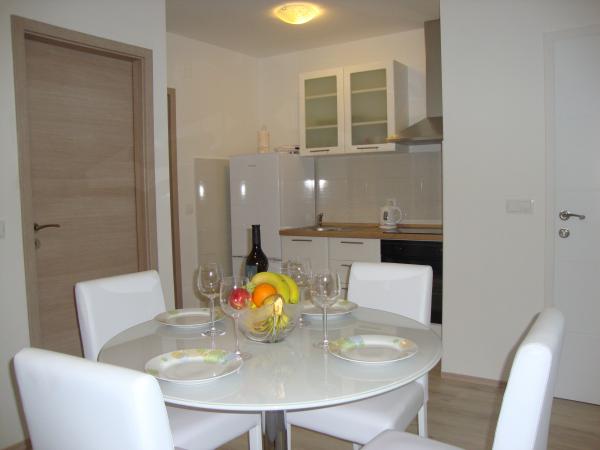 Byty Longin se nacházejí v prvním patře a jsou ideální pro dvě rodiny. Jsou spojeny malou halou, která sídlí přední dveře domu. Majitelé bydlí v přízemí, a pozemky v okolí dvoře domu, olivovníky a venkovní krb, který je k dispozici pro hosty. Patro Byt má 31 m2 a terasu o velikosti 20 m2 a byt LEONA má 31 m2 a balkon 4 m2. Vedle domu je mini-market. Na pláži je 300 metrů a 800 metrů a oba mají parkování zdarma, sprchy a zařízení s jídlem a pitím. Ostrov Ugljan je spojen s pevninou expresních linek každou hodinu, takže žádný Zadar není daleko. Apartmány LONGIN se nachází v obci Kali. Dvě menší veřejná bezplatná parkovací místa se nachází 50m od apartmánu, zatímco se zařízením parkovacího místa.