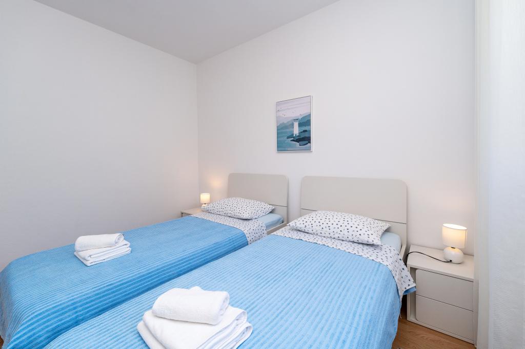 Apartmány Mirela se nacházejí mezi Kali a Preko na ostrově Ugljan. Dům se nachází v první řadě k moři. Apartmány se nacházejí v prvním patře rodinného domu a oba apartmány mají krásný výhled na moře. Trajektový přístav Preko je vzdálený pouhých 5 minut chůze.