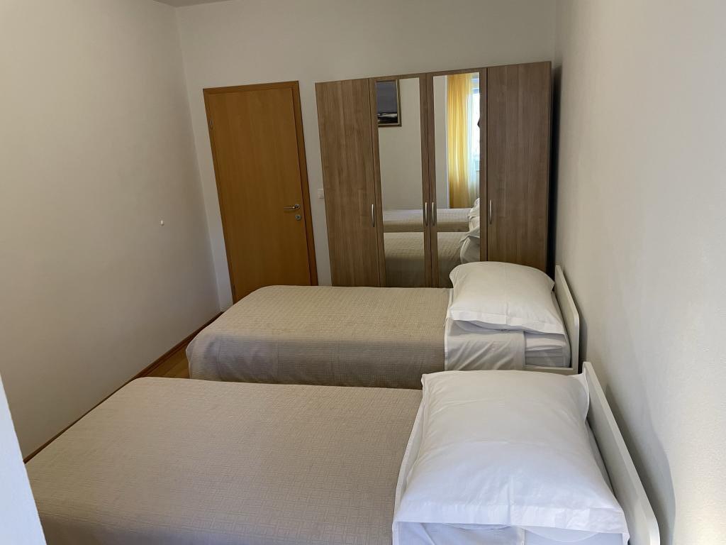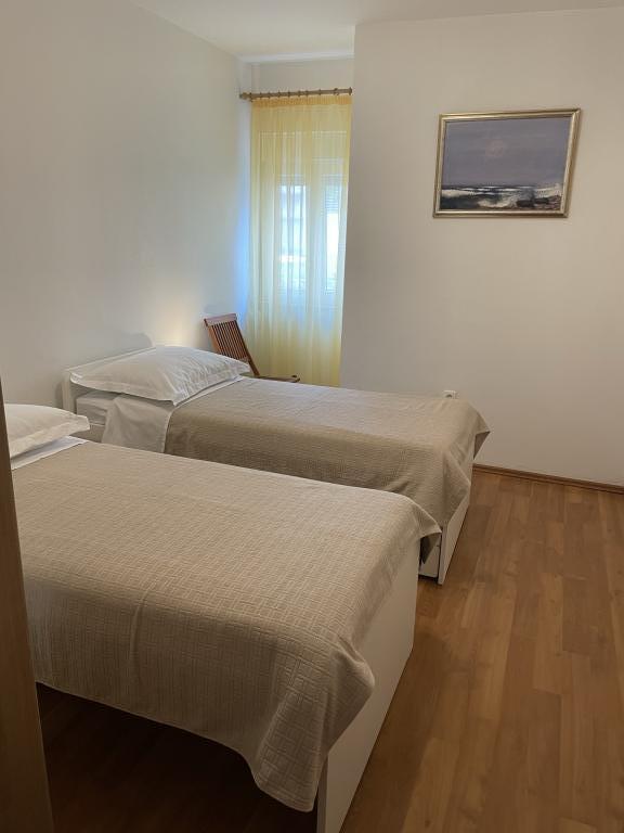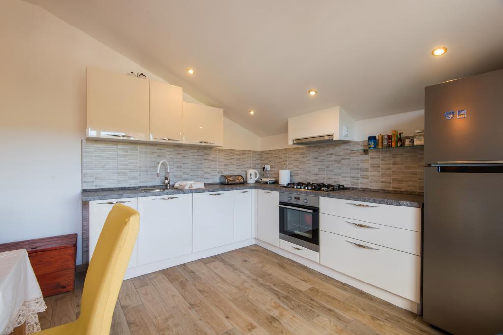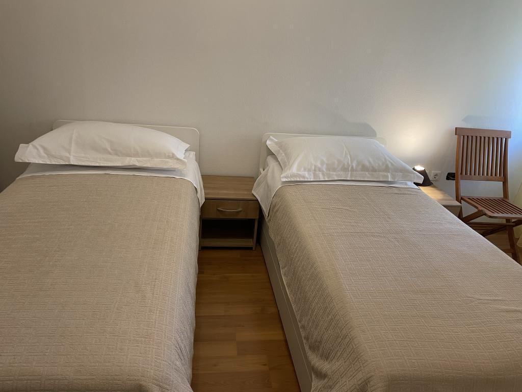 Apartmány jsou v prvním patře domu, který se nachází v zátoce Lamjana v klidném prostředí u moře, moderní a plně zařízený. Byt 2 má jednu ložnici s manželskou postelí a velkou pohovkou v kuchyni s východem na balkon, kde nábytek, koupelna se sprchovým koutem. Apartmán 1 má dvě ložnice a přistýlkou v kuchyni, koupelna se sprchovým koutem, na balkóně nábytku. Centrum města je cca 900 m. Ve dvoře je gril, který je k dispozici pro naše hosty.