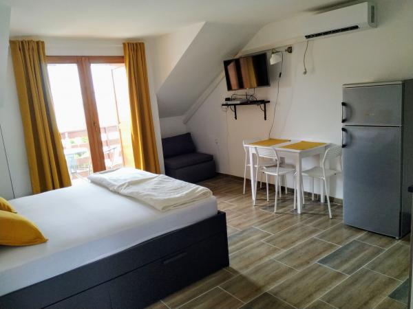 Apartmány se nacházejí v klidnější a izolované části ostrova Rab, ohraničené malým počtem domů, téměř neznatelným provozem a minimálním kontaktem s vnějším prostředím, což poskytuje pocit dokonalého klidu a naprosté relaxace. Vás i Vaši rodinu přivítá krásný a uklizený prostor s přímým výhledem na moře, který je vzdálený pouhých padesát metrů (pěšky) s několika druhy pláží v okolí, ideální pro manželské páry s dětmi. Dům se skládá ze dvou apartmánů (každý pro čtyři osoby) a dvou studiových apartmánů (každý pro tři osoby). Vše bylo v roce 2018 kompletně zrekonstruováno. Apartmány a studia jsou plně vybaveny a zahrnují satelitní TV, internet, klimatizaci a hlídané parkoviště. Největší předností naší oblasti je dokonale klidné prostředí, které doprovází zvuky vrčení, racků, vln a občasné turistické lodi. Provoz v okolí bytu je velmi vzácný a nedochází k přetížení turistů, aut a zařízení. Děti můžete bez obav poslat plavat a hrát si.