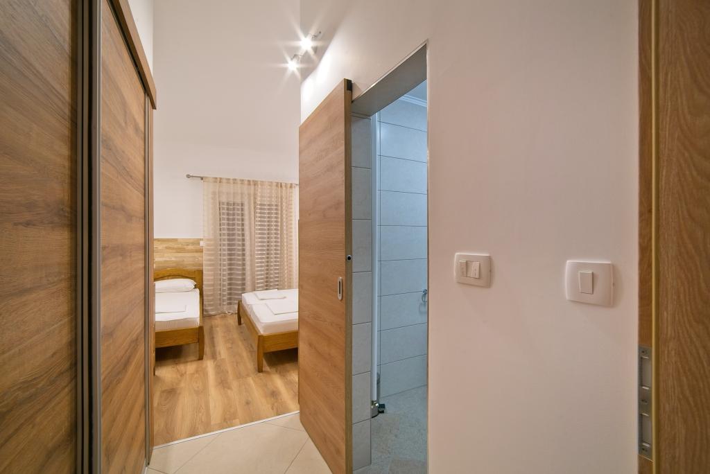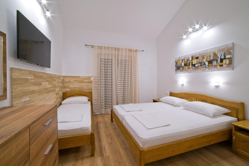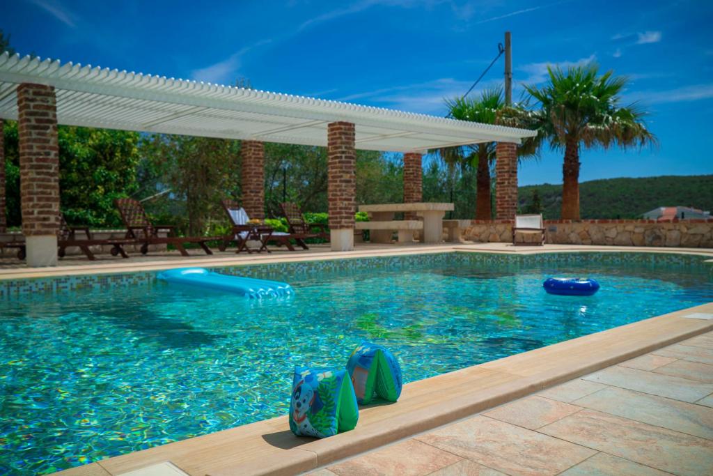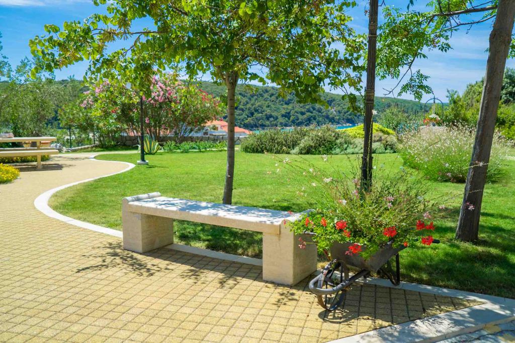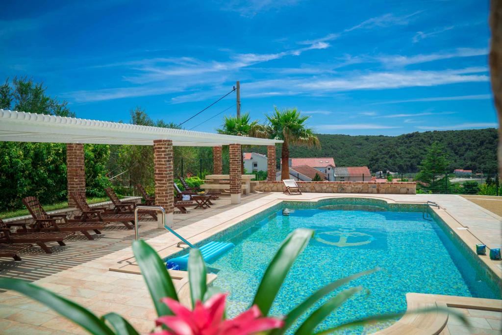 Pobytová taxa je v ceně.Na velké ploše nad domem se rozkládá krásná zahrada pro delší pobyt ve večerních a odpoledních hodinách. K dispozici je dětská herna, bohatý stůl a bohatý a dobře vybavený gril, vybavená kuchyňka s toaletou a několik zahradních stolů a židlí. Moderní vybavený venkovní bazén, velikost 9, 50 x 5, 20 metrů, hloubka 1, 50 metrů, vybavený lehátky a slunečníky a občerstvením. Z krásné zahrady a oblasti opalování kolem bazénu vás ohromí výhled na moře. Možnost výletů lodí po ostrově Rab, piknik, panoramatické výlety, výlety lodí na sousední ostrovy Pag, Lošinj a Krk. Zajišťujeme kotvení lodí pro jachtaře a pro naše nejmladší, šipky, stolní fotbal a vzdušný hokej.