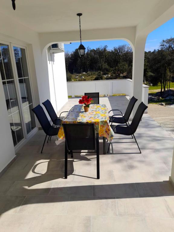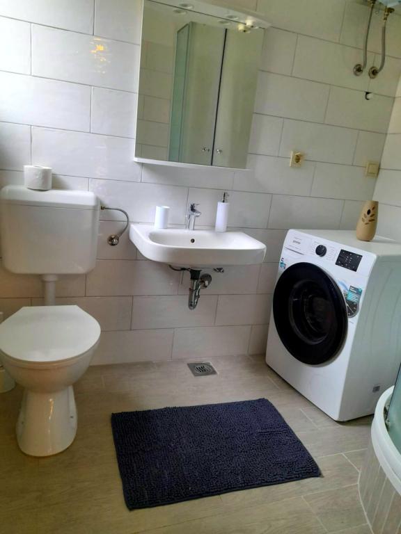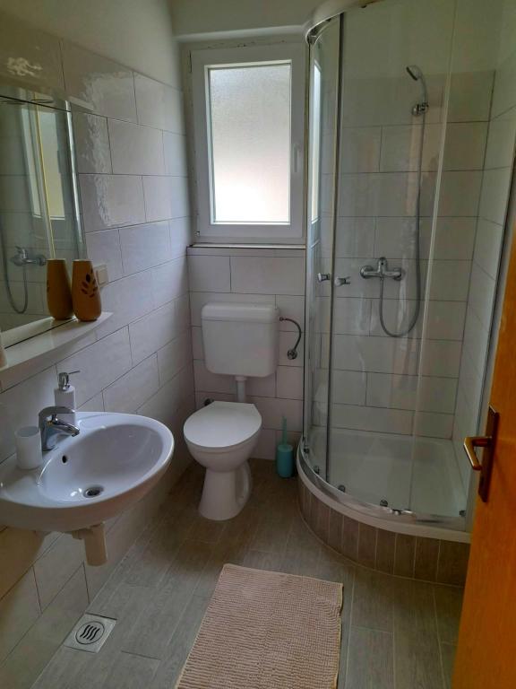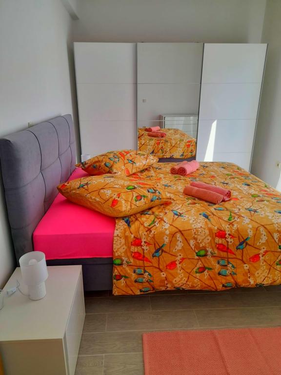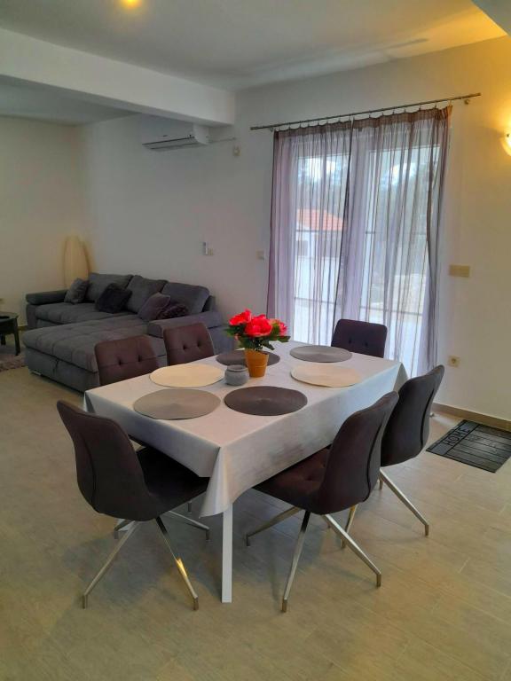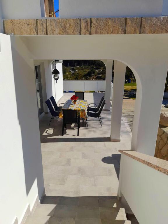 Tento apartmán se nachází v lesní oblasti a v bezprostřední blízkosti pláže a moře. Je to ideální místo pro strávení odpočinkové dovolené v klidu a pohodě. Apartmán A4+2 (až 6 osob) se nachází v prvním patře a je velký asi 100 m² a skládá se z následujících místností: plně vybavená kuchyň s obývacím pokojem s klimatizací, TV s plochou obrazovkou se satelitními programy a rozkládací pohovkou pro dvě osoby (kde mohou spát 2 osoby), 2 ložnice s manželskými postelemi (šířka 1,80 m) a 2 koupelny se sprchou. Byt má balkon, terasu u vchodu, střešní terasu, vlastní gril a parkoviště. Nejbližší pláž je vzdálená cca 700 metrů a dá se na ni dojít pěšky jen na 10 minut (nejrychlejší je lesní zkratka).