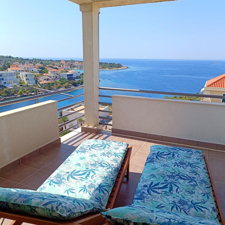 Apartmán MATAN (Rogoznica-Kanica) Komfortní a plně vybavený apartmán, Wi-fi, Klimatizace, Gril, Parkování, apartmán má vlastní samostatný vchod a vlastní velkou krytou terasu 18 m2 s krásným výhledem na moře, pláž je 70 metrů daleko. Extrémně čisté a průzračné moře, klid, ticho bez davů a hluku aut a zachovalá příroda nabízí našim hostům kompletní dovolenou jak pro rodiny s dětmi, tak pro ty, kteří rádi tráví dovolenou v INTIMATE.Apartmány mají gril a bezpečné parkování vedle do domu. V Rogoznici, Primoštenu a Trogiru najdete vše pro večer, zábavu a nákupy. Pláže jsou oblázkové, kamenité a betonové. Místo vhodné pro milovníky rybaření, procházek a rekreačního běhání. Vítejte