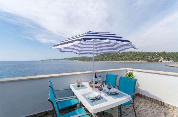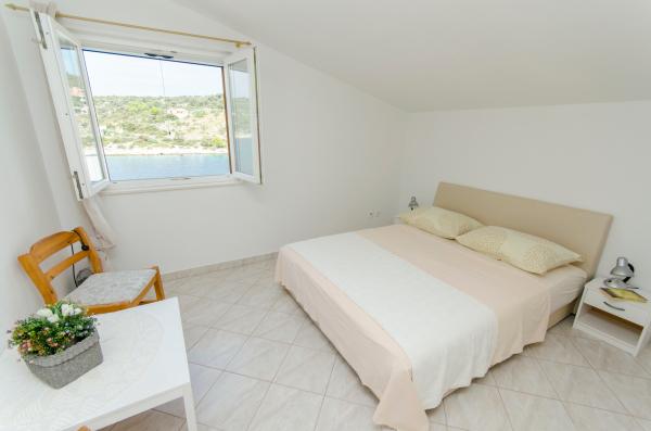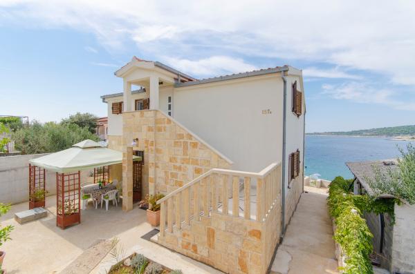 Ideální místo k odpočinku s úžasným výhledem na moře - je to dobrá volba pro každého, kdo hledá odpočinek, klidné místo mimo město, hlučné bary a restaurace, ale v okolí je malá restaurace s denním menu, pizzy a zmrzliny , je zde také každý den pekař s čerstvým chlebem a pekárenskými výrobky. Malý obchod je asi 1 km daleko. Byt byl čistý s prostornou koupelnou, pohodlnými postelemi, plně vybavenou kuchyní, večeří na balkóně při sledování západu slunce - byl to opravdu pěkný zážitek! Pláž je blízko, čisté moře. Okolí domu bylo čisté, pečlivě udržované, zeleň, voňavý levandule. Parkování pro auto bylo ve dvoře majitelů a bylo chráněno před sluncem. Přátelští majitelé, péče, ale plně respektovali naše soukromí. Paní Ivanka nám několikrát nabídla chutné domácí pečivo. Byt má vše, co potřebujete, včetně AC a rychlé wifi. Byli jsme velmi spokojeni, v červenci 2019 jsme zde strávili 2 týdny. Dobře Děkuji! Peter a Gabriela, Slovensko