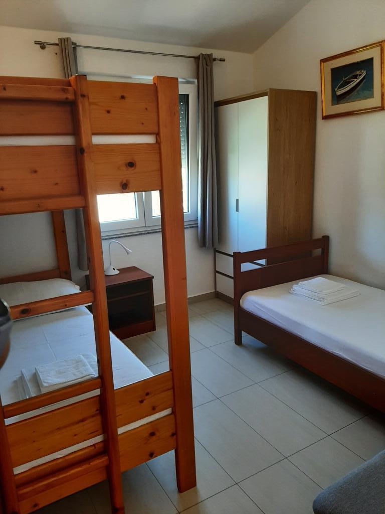 Malá prázdninová vesnička Kanica je 10 km od Rogoznice, 20 km od Trogiru, 30 km od Šibeniku...nejbližší oblázková pláž je vzdálena 150 m (restaurace a bar u pláže) a celý poloostrov v okruhu necelých více než 500 m je neobydleno. Krásné pláže, čisté moře a příroda. Obchod je vzdálený 3 km a kolem 8. hodiny ráno přijíždí před dům dodávka se základními potravinami (chléb, mléko, ovoce, zelenina). Vedle domu je parkoviště a gril pro použití hosty. Dům má dva samostatné dvoupokojové byty (jeden v přízemí pro 5 osob a druhý v patře pro 6 osob), každý s uzavřeným prostorem 48 m2 s terasami 20 m2. Každý apartmán má jedno (1) parkovací místo.