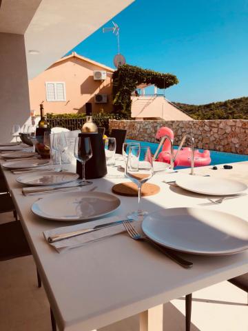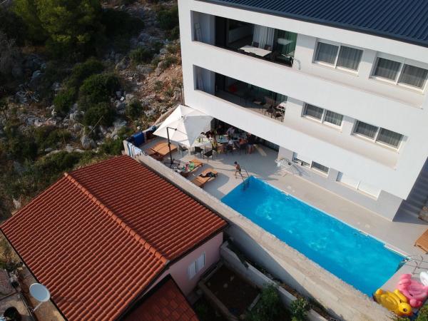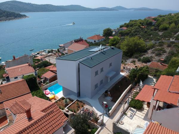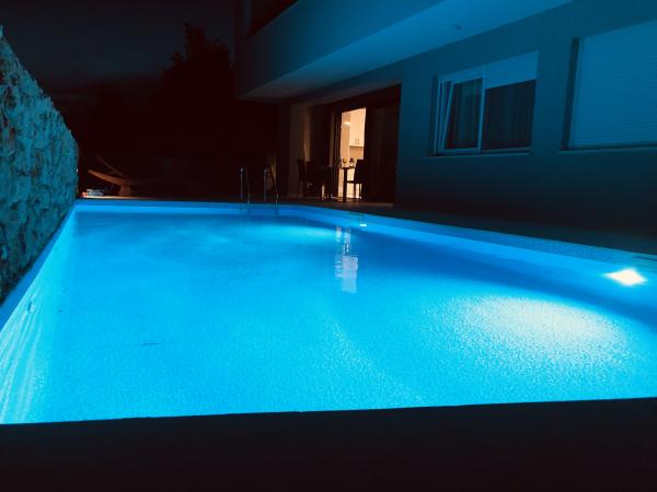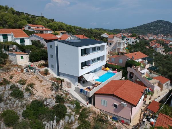 Luxusní apartmány ve zcela nové vile na ostrově Kaprije v souostroví Šibenik. Krásná středomořská zahrada, soukromá pláž je 150 metrů od domu. Kaprije je krásný ostrov s autentickou krajinou a způsobem života ve střední Dalmácii. Žádné auta, exotická příroda, ohromující pláže, kouzelné západy slunce a klidné, ohromující noci, kde můžete jen slyšet vlny ... Ideální jak pro nezapomenutelnou rodinnou dovolenou, tak pro romantickou dovolenou ... Apartmány mají vše, na které jste zvyklí v moderním způsobu života. Ručně řemeslný nábytek a postele a špičkové spotřebiče. Dvě luxusní ložnice s manželskou postelí a čtyřmi pohovkami v obývacím pokoji. Může se ubytovat až 8 hostů. Přikrývky z hedvábí, polštáře z bambusu, lavenderové matrace ... Dvě koupelny s procházkami ve sprchách. Plně vybavená kuchyňská linka s myčkou a pračkou ukrytá ve vestavěném skříni v hale. Všechny pokoje jsou vybaveny jednotkami AC. Zdarma WIFI. V apartmánu Rocks je exkluzivní přístup do bazénu s rozlohou 32 m2.