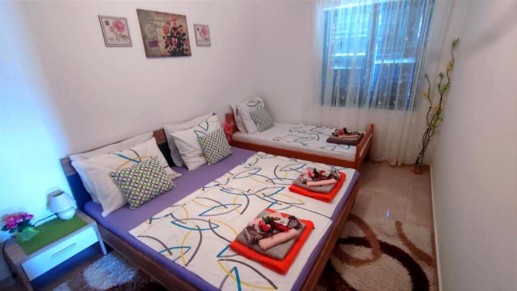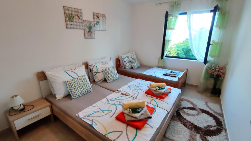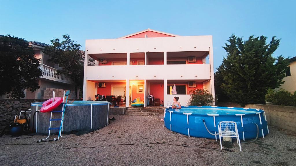 Apartmány se nacházejí v klidné ulici bez většího provozu. Před budovou je velké bezplatné parkoviště. Zařízení nabízí výhled na mořské pobřeží, ostrov Pag a krásné pohoří Velebit. Zařízení je plně vybaveno pro příjemný pobyt. Každý apartmán má obývací pokoj, jídelnu, kuchyň, koupelnu a ložnici. Bezplatné parkování před budovou je 10 minut chůze od hotelu. Ve dvoře zařízení je k dispozici soukromý bazén zdarma, grilovací koutek se stolem a židlemi. Většina zařízení (obchody, rekreační středisko, pláže, lékárna, restaurace, dětský park, aquapark, náměstí a další atrakce) je v blízkosti, takže nepotřebujete auto. V letním období se ve městě koná letní program (hry, koncerty) a organizují se také jednodenní trajektové trasy na ostrov Pag. V okolí je několik menších míst, která stojí za návštěvu, stejně jako krásná zátoka Zavratnica.